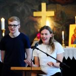 Hannah (Burkeland) og Trygve (Sivertsen) har vært medlemmer av kirken helt siden de ble konfirmert. Nå går de nest siste året på videregående; og de deltar dette året også i Metodistkirkens lederutdanningskurs for ungdom, Timoteus. Søndag sto de for en godt planlagt og gjennomført gudstjeneste. Vi er heldige som menighet å ha slike bevisste, dyktige og frimodige ungdommer; og best av alt: de er ikke alene!