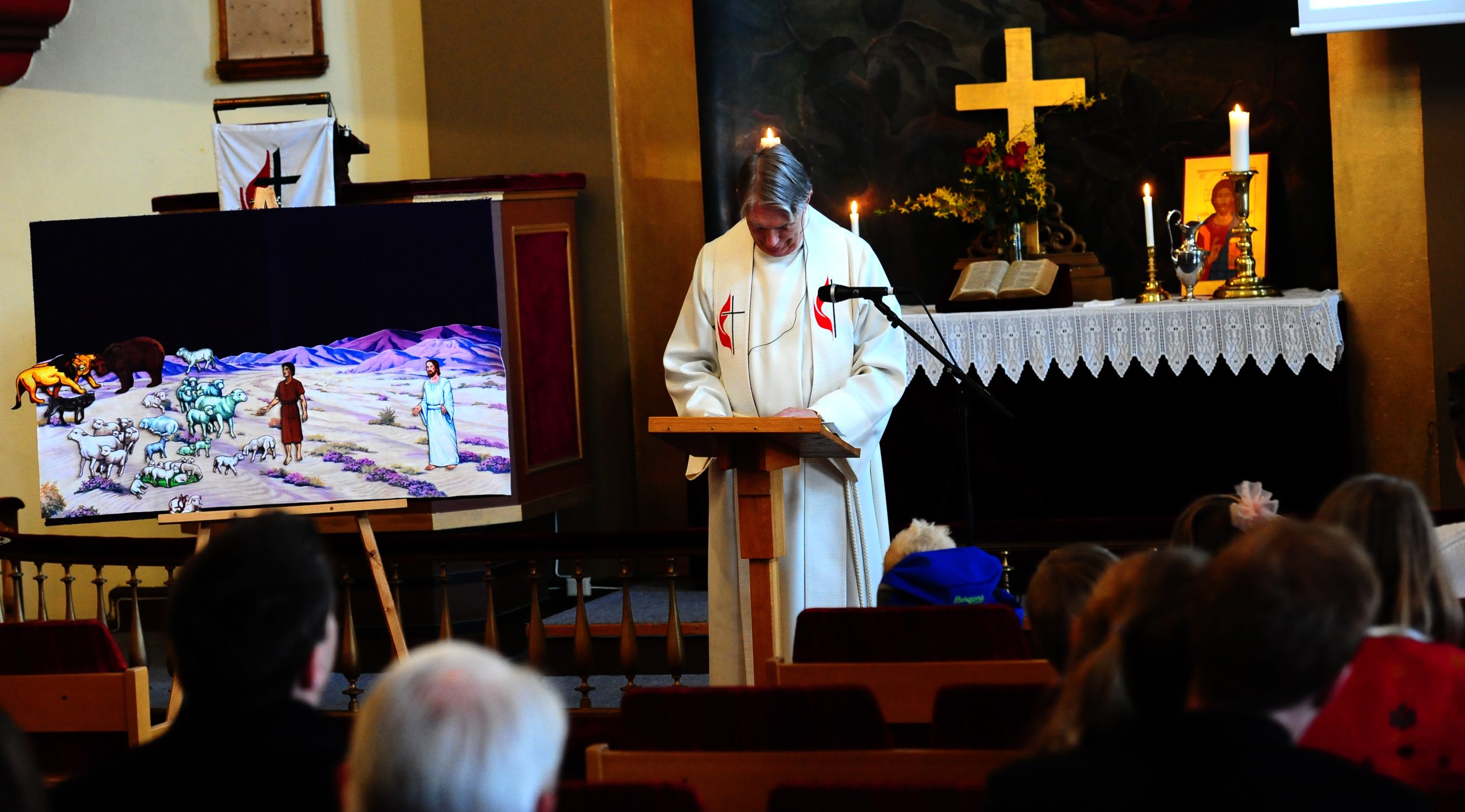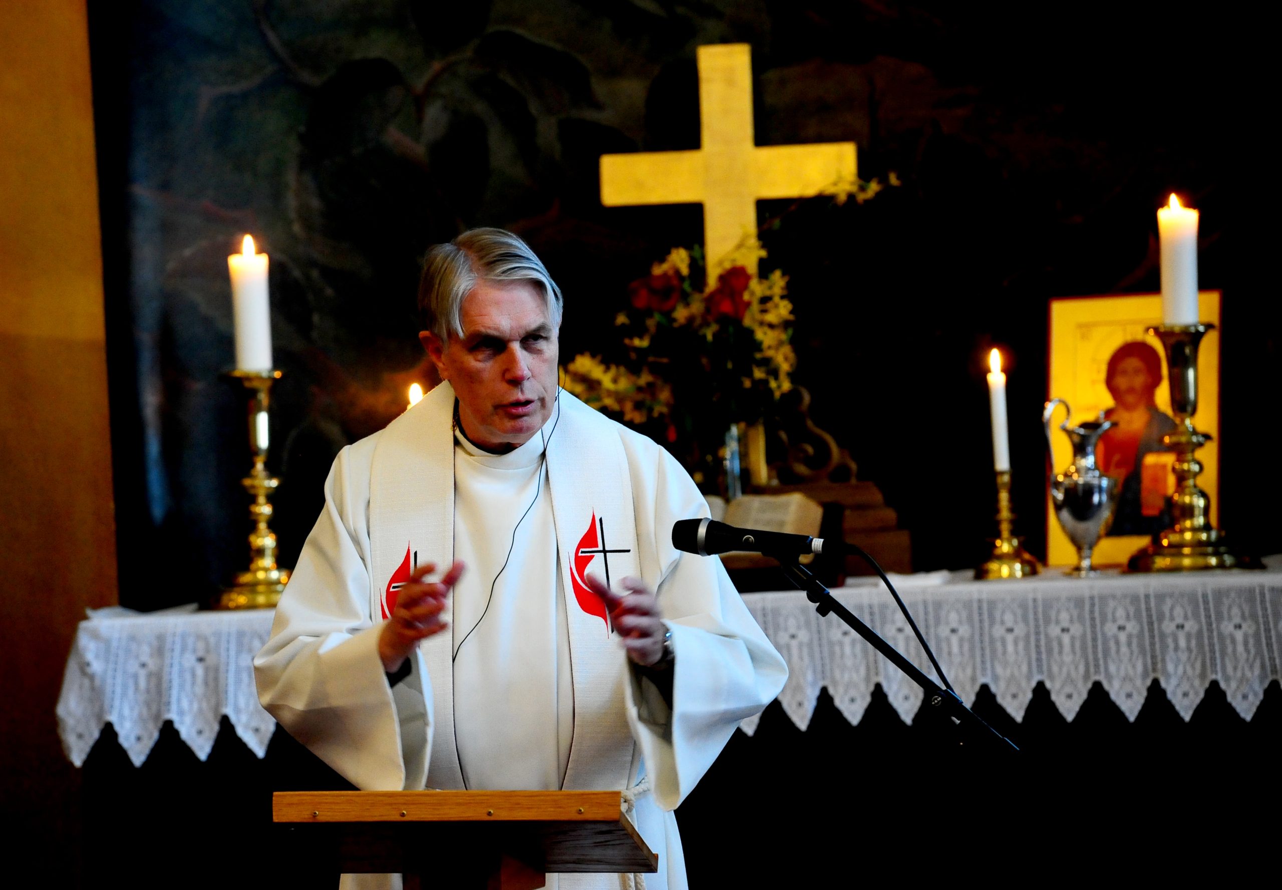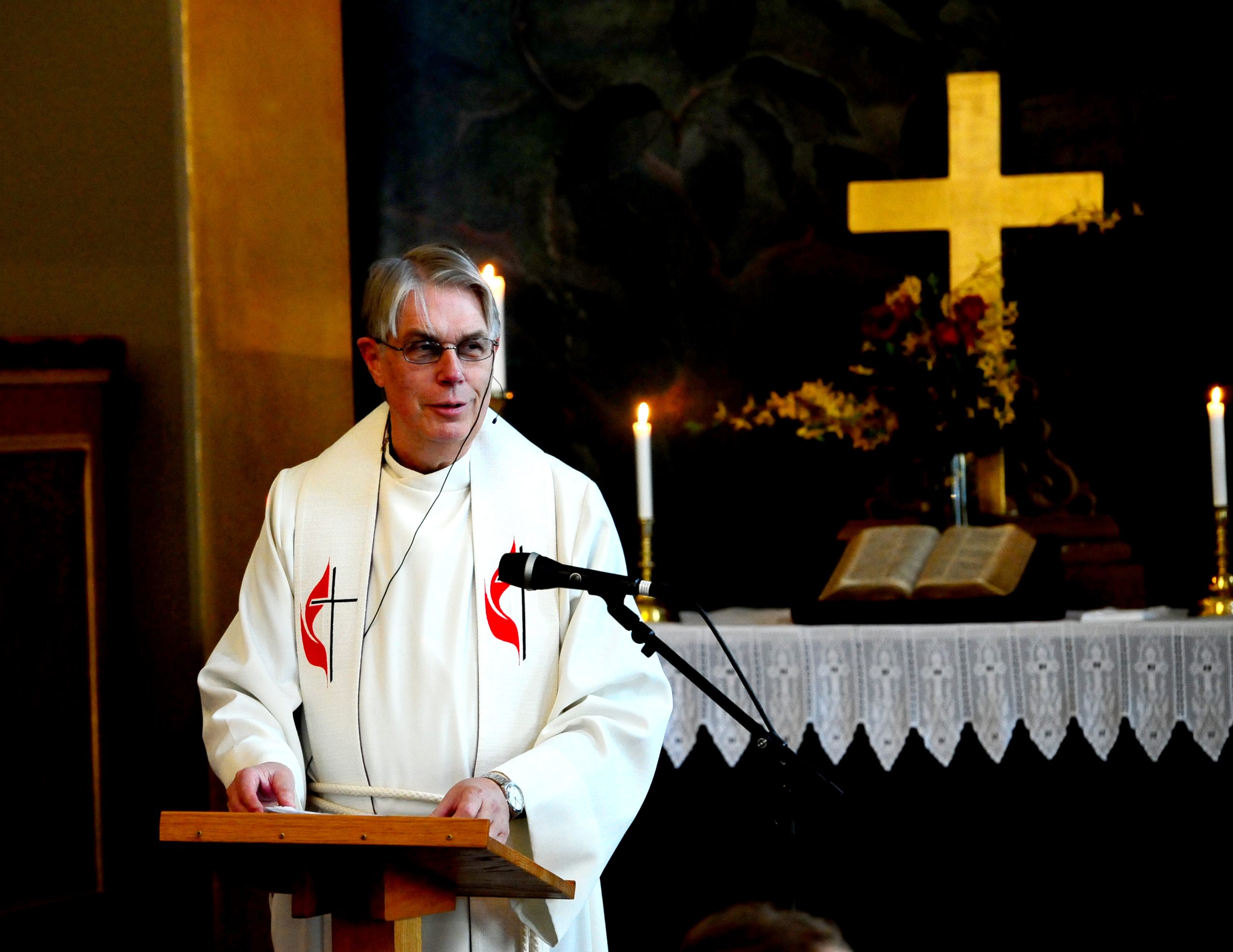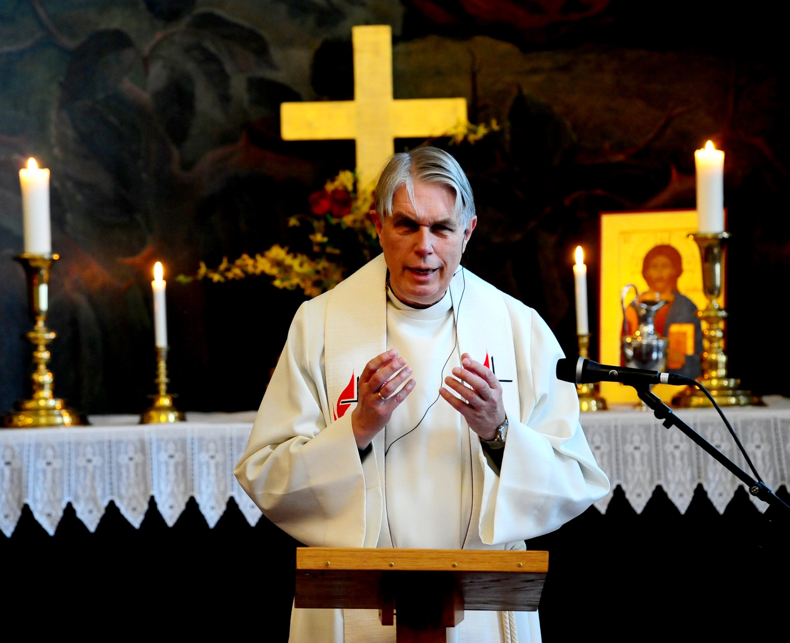 En preken han innledet med å påpeke at kapittel 10 i Johannesevangeliet handler om hvordan Jesus bruker bilder fra sauehold i Israel for å fortelle hvem han er, og hva han gjør. Jesus er den gode gjeteren som er villig til å ofre livet for å beskytte sine sauer.  Og i dagens tekst står Jesus i søylegangene i tempelet og forkynner: «Mine sauer hører min stemme; jeg kjenner dem og de følger meg. Jeg gir dem evig liv. De skal aldri i evighet gå tapt og ingen skal rive dem ut av min hånd. Det min Far har gitt meg, er større enn alt annet, og ingen kan rive det ut av min Fars hånd. Jeg og Faderen er ett.»