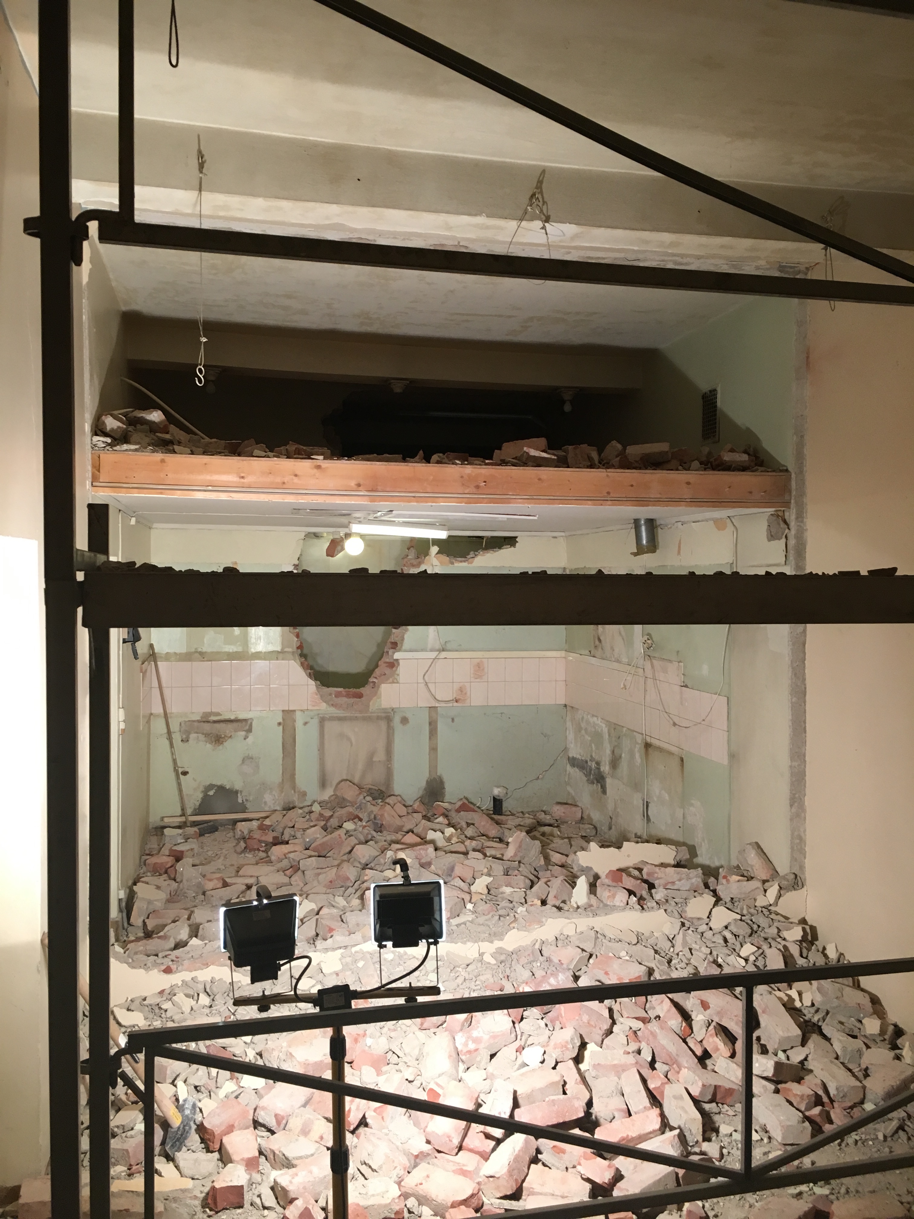 Det var nemlig veldig mye murstein som ventet på å bli fjernet i kirkekjelleren etter at to vegger var revet ned for å gi rom til nytt og større kirkekjøkken. Bøtte etter bøtte etter bøtte ble fylt med murstein, båret opp fra kjelleren og kastet i containeren utenfor kirkedøra. Etter kjempeinnsats var hver bidige murstein fjernet løpet av knapt fire timer!! Og vekta av mursteinen er troverdig ingeniør-beregnet til mellom 7 og 8 tonn!!