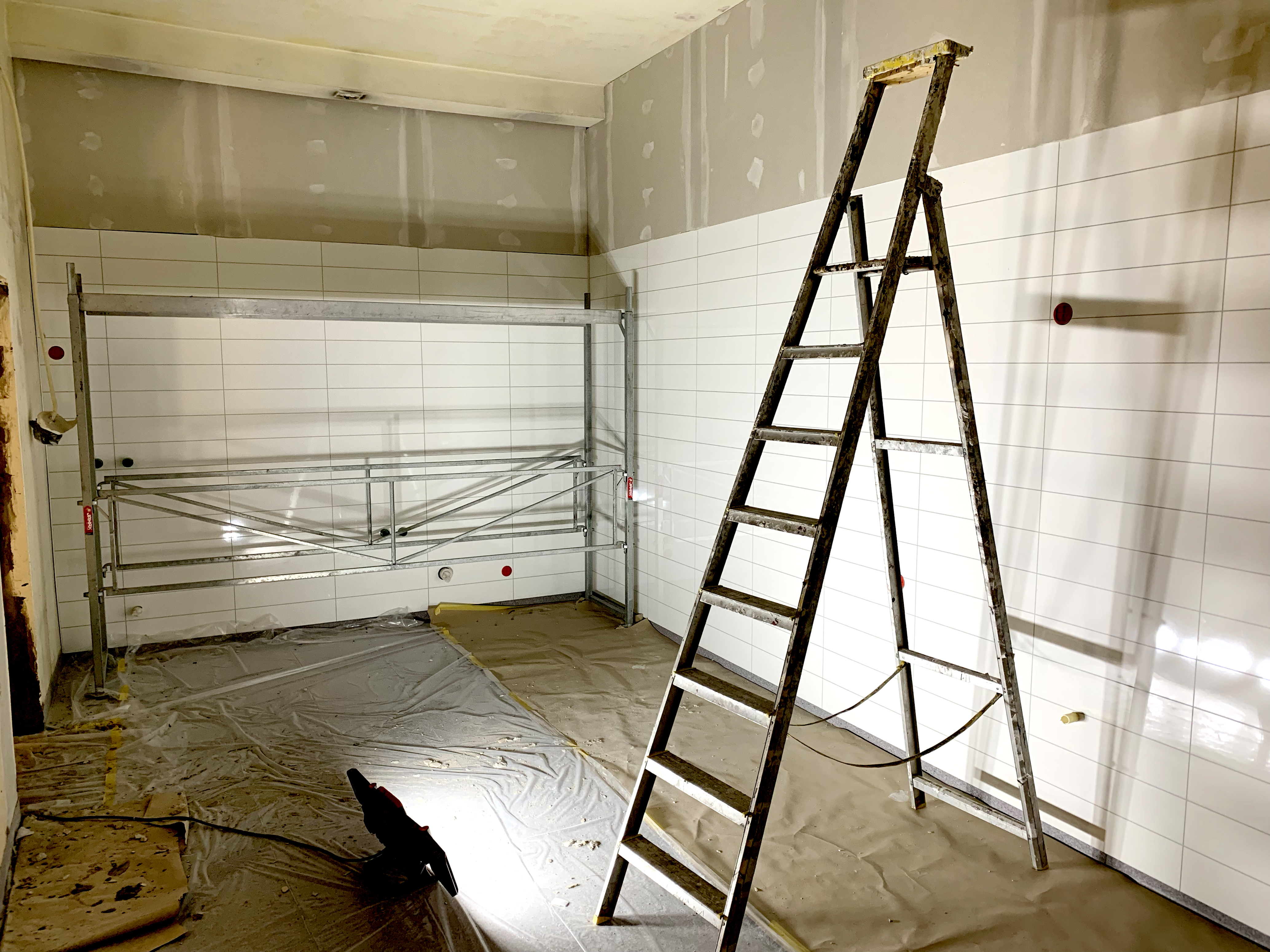 Grundig planlegging og dyktige håndverkere (og noen solide dugnadsinnsatser, gjør at dette prosjektet bygningsmessig er i rute, og vel så det! Et slitesterkt gulvbelegg er lagt på kjøkken, toalett og i korridoren. Veggene har fått plater; Og i Wesleysalen står all kjøkkeninnredningen (benker, skap, ovn, oppvaskmaskin etc) allerede stablet – klar til montering. Men nå skal også de første del-regningene betales, og det hadde vært flott om innsamlingsaksjonen holdt tritt med byggeprosjektets framskritt!