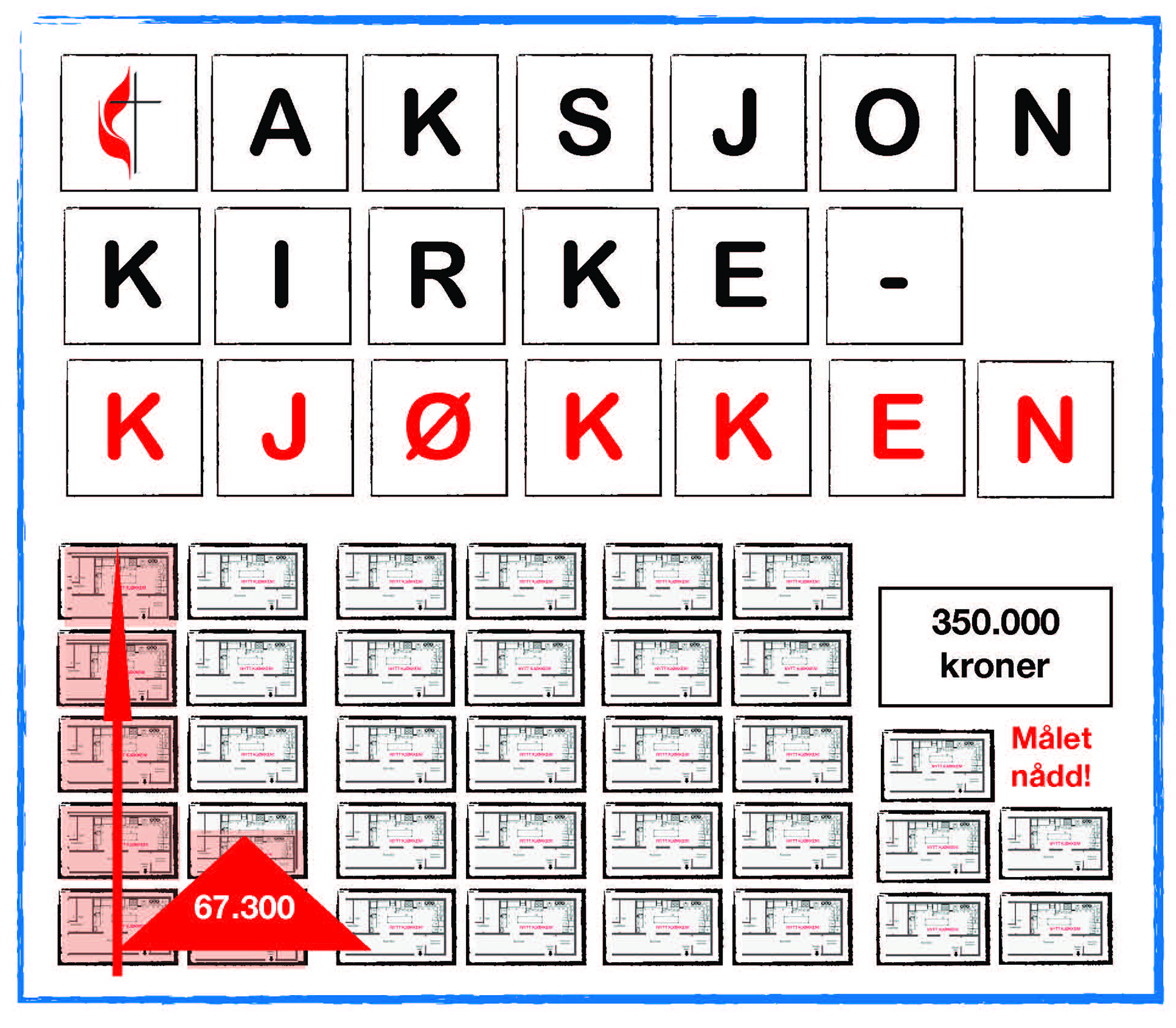Grundig planlegging og dyktige håndverkere (og noen solide dugnadsinnsatser, gjør at dette prosjektet bygningsmessig er i rute, og vel så det! Et slitesterkt gulvbelegg er lagt på kjøkken, toalett og i korridoren. Veggene har fått plater; Og i Wesleysalen står all kjøkkeninnredningen (benker, skap, ovn, oppvaskmaskin etc) allerede stablet – klar til montering. Men nå skal også de første del-regningene betales, og det hadde vært flott om innsamlingsaksjonen holdt tritt med byggeprosjektets framskritt!