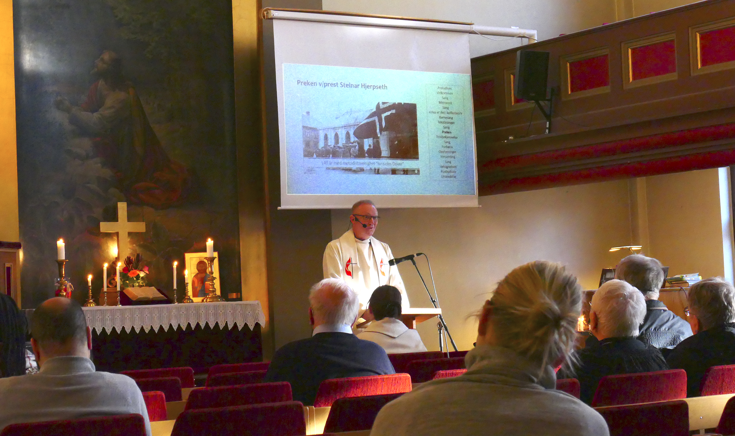 – Jeg tenker altså at menigheten her i Trondheim aldri stagnert (i motsetning til mange), men til enhver tid evnet å finne sin plass i sin tid, sa Hjerpseth. Menigheten har hatt et budskap å formidle, og det har den fortsatt. Så lenge dere klarer å møte menneskene som lever her og nå, så er det ingen grunn til at det skal stoppe med 140 år, mente gammelpresten vår som avsluttet sin preken slik: