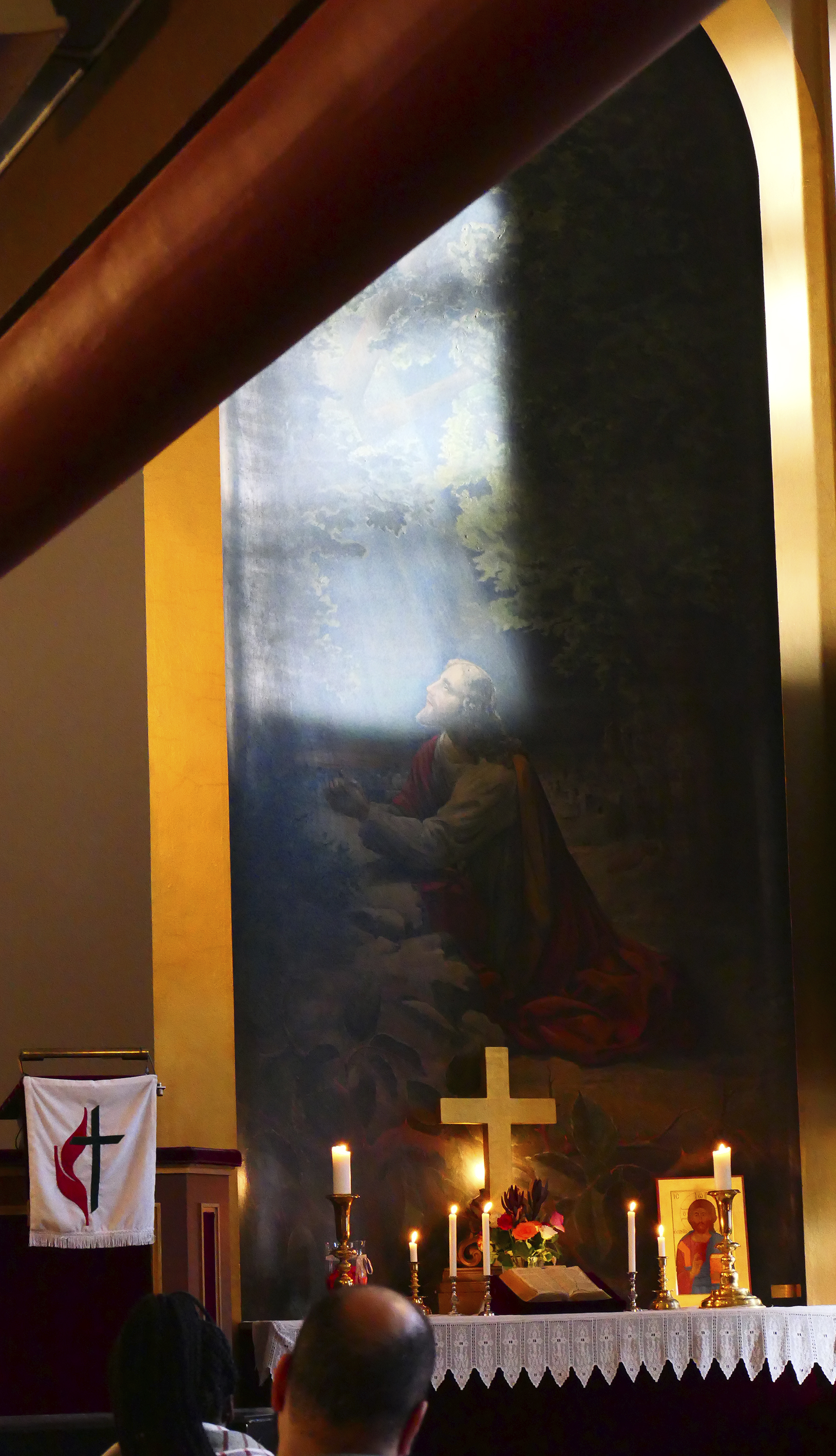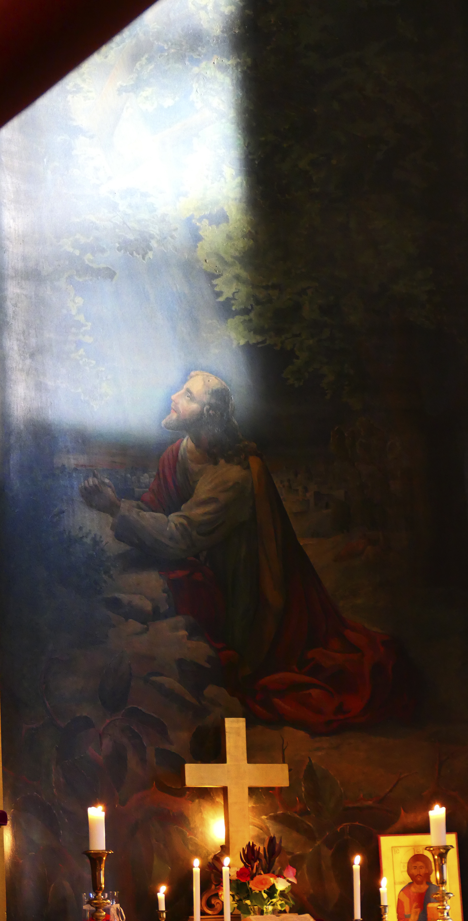 Som en slags ekstra «jubileumshilsen» ville solen det slik at den reflekterte på Jesu ansikt på altertavlen vår, slik den gjør i noen perioder hvert år. Ganske så stemningsfullt det også: