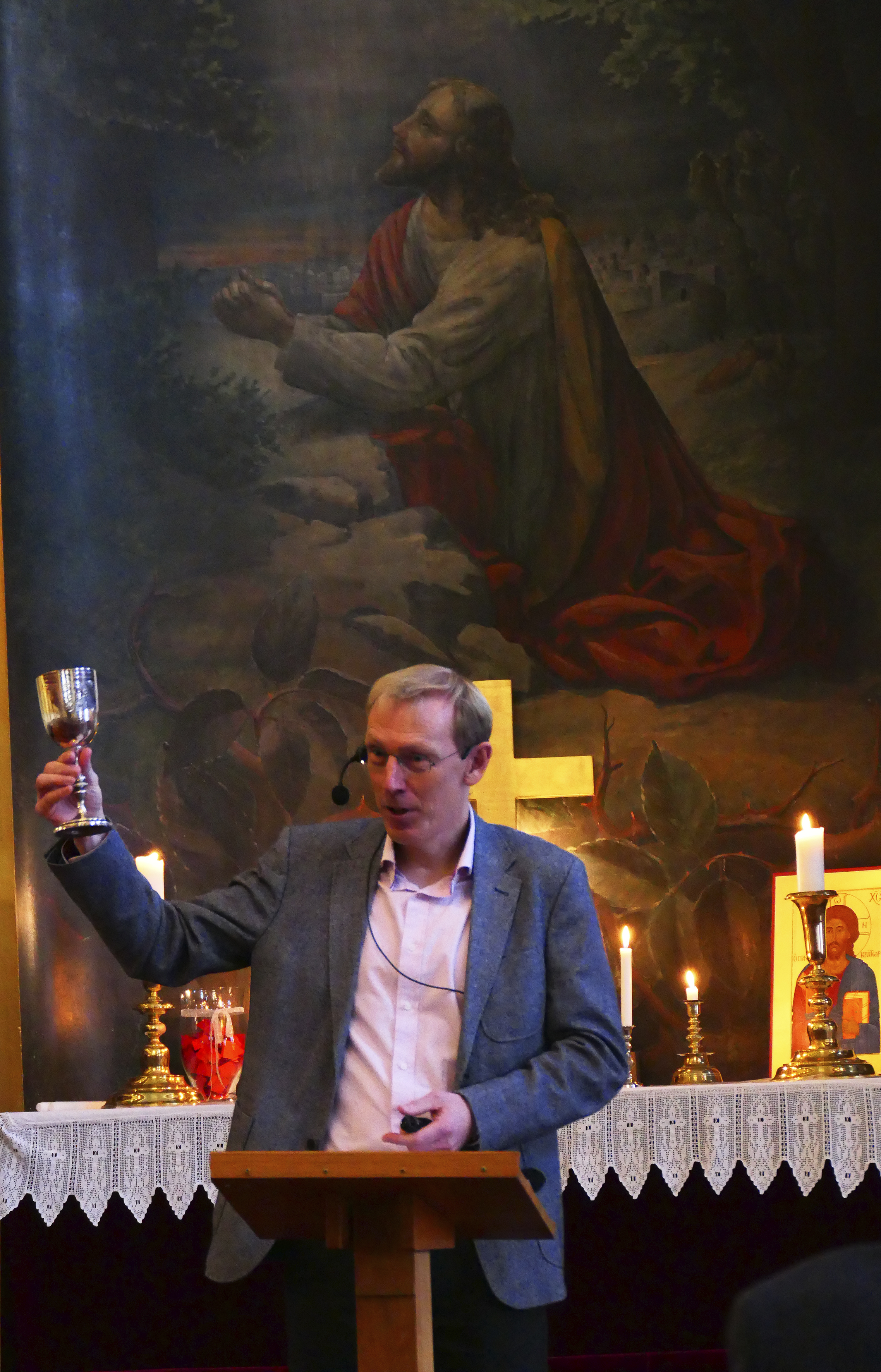 Og hele jubileumssøndagen var vi omgitt av de vakre moderne ikonene i utstillingen som åpnet i kirkesalen og Wesleysalen lørdag.( se egen sak på hjemmesiden ). Utstillingen blir hengende til lørdag 4.desember. Den anbefales!