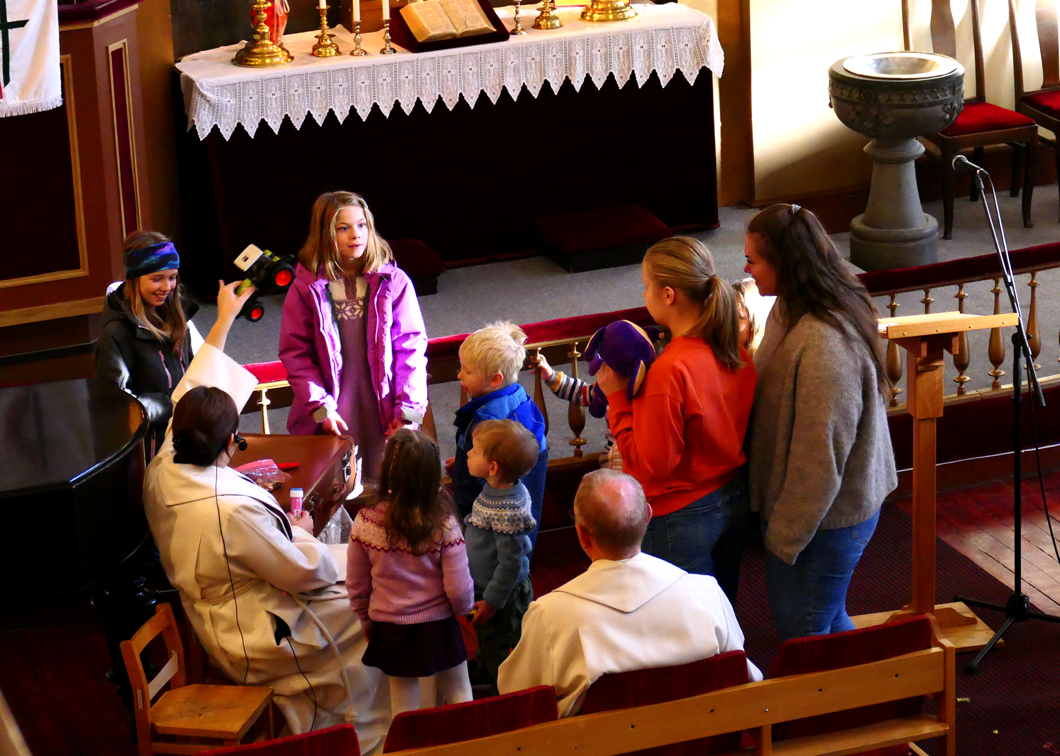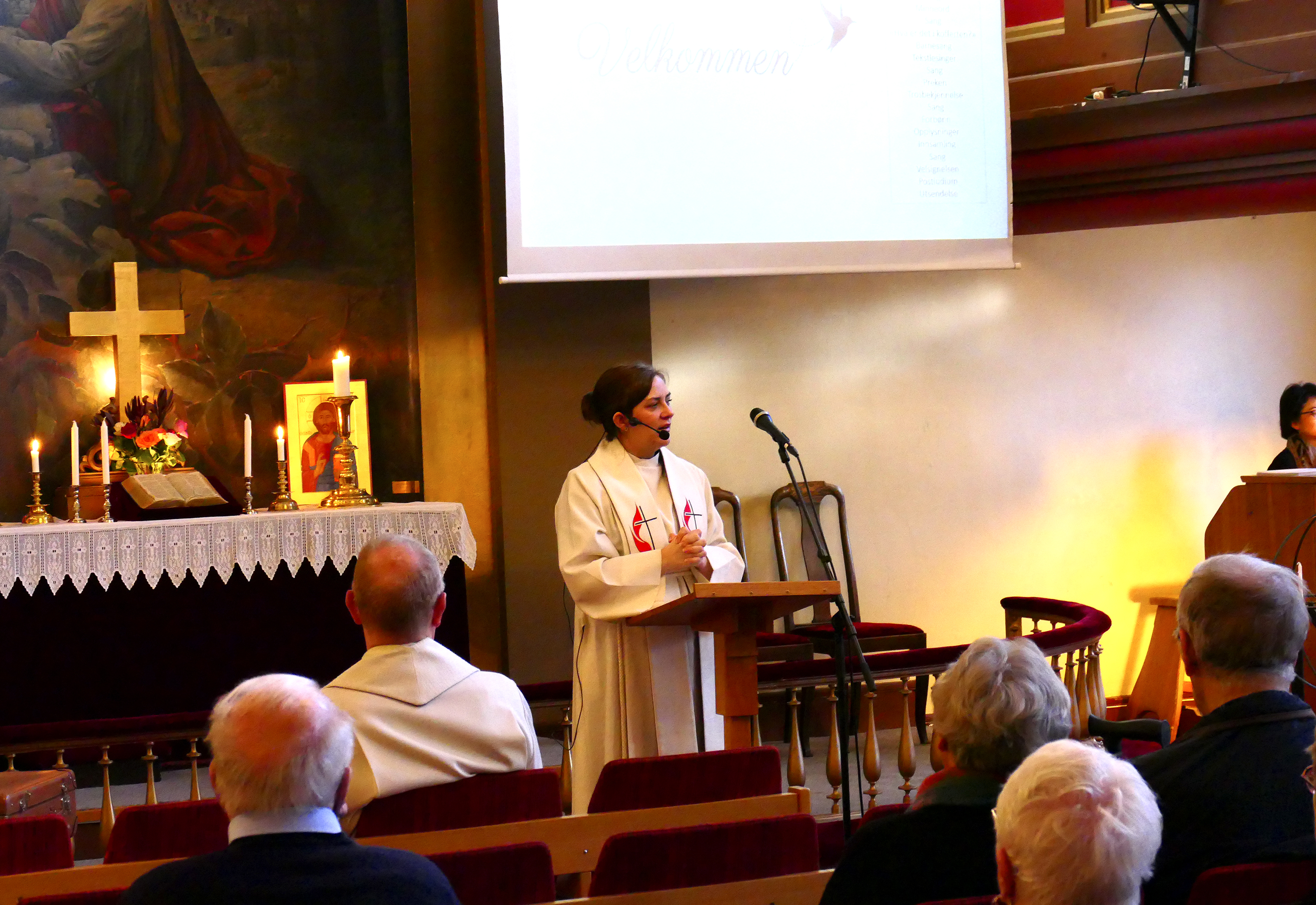 Jubileets hovedisamling var selvfølgelig søndagens jubileumsgudstjeneste som ble ledet av vår prest Christina Thaarup. Men akkurat denne dagen var det ekstra stas med gjensyn og gjenhør med «gammelpresten» vår, Steinar Hjerpseth og fru Anne! (Referat av Steinars sterke og gode preken finner du i egen sak på hjemmesiden). Gudstjenesten samlet gledelig bra med folk, og ikke minst var det flott (og løfterikkt) med mange barn! Organisten vår, Takako Ueno, bidro til jubileumsstemningen!