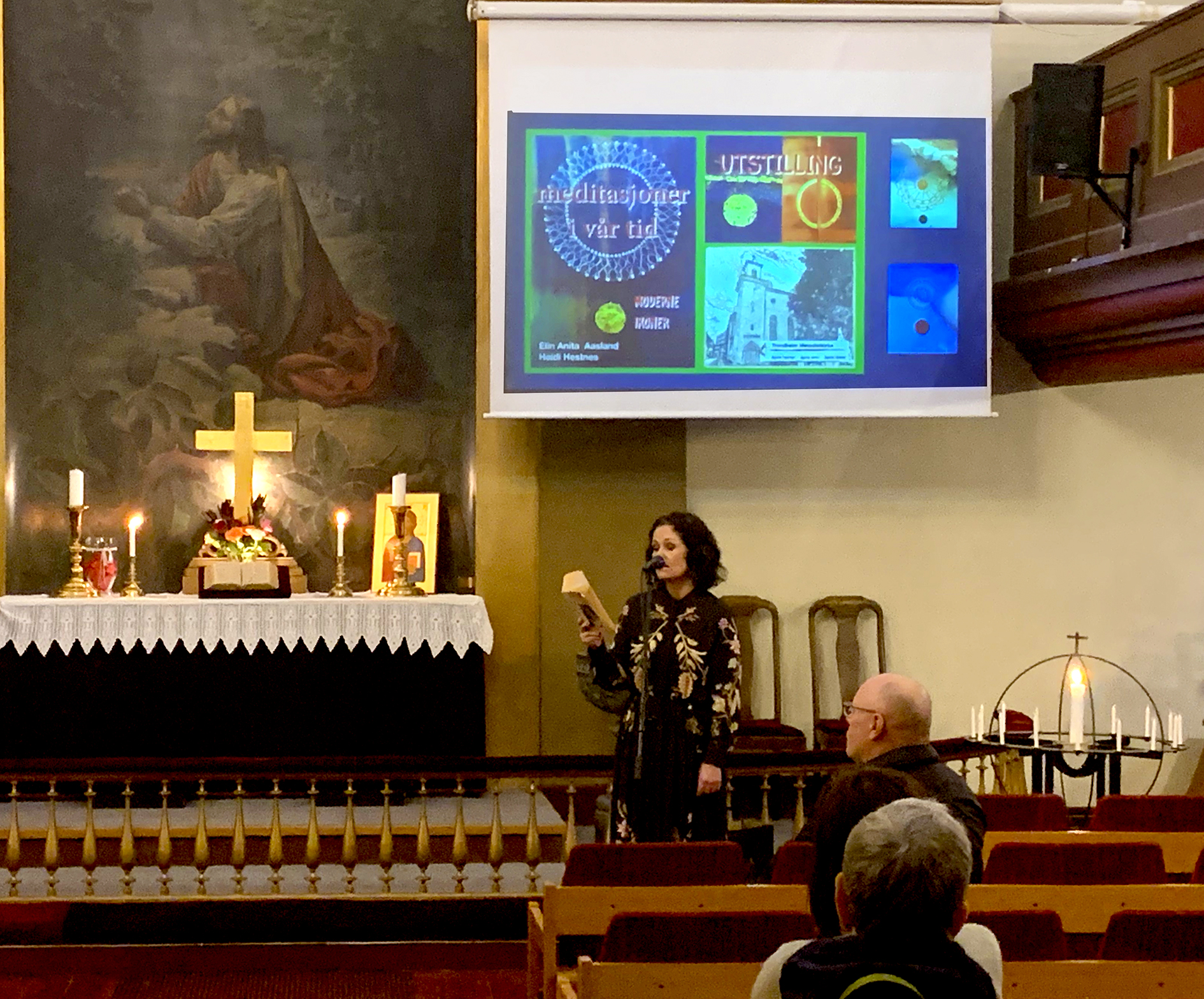 Utstillingen åpnet lørdag 6. november, og inngår i markeringen av menighetens 140-års jubileum. Ole-Einar Andersen ingtroduserte kunstnerne Elin Antia Aal og Heidi Vestes, og overrakte dem hver sin lille blomsterdekorasjon ved den formelle åpningen.