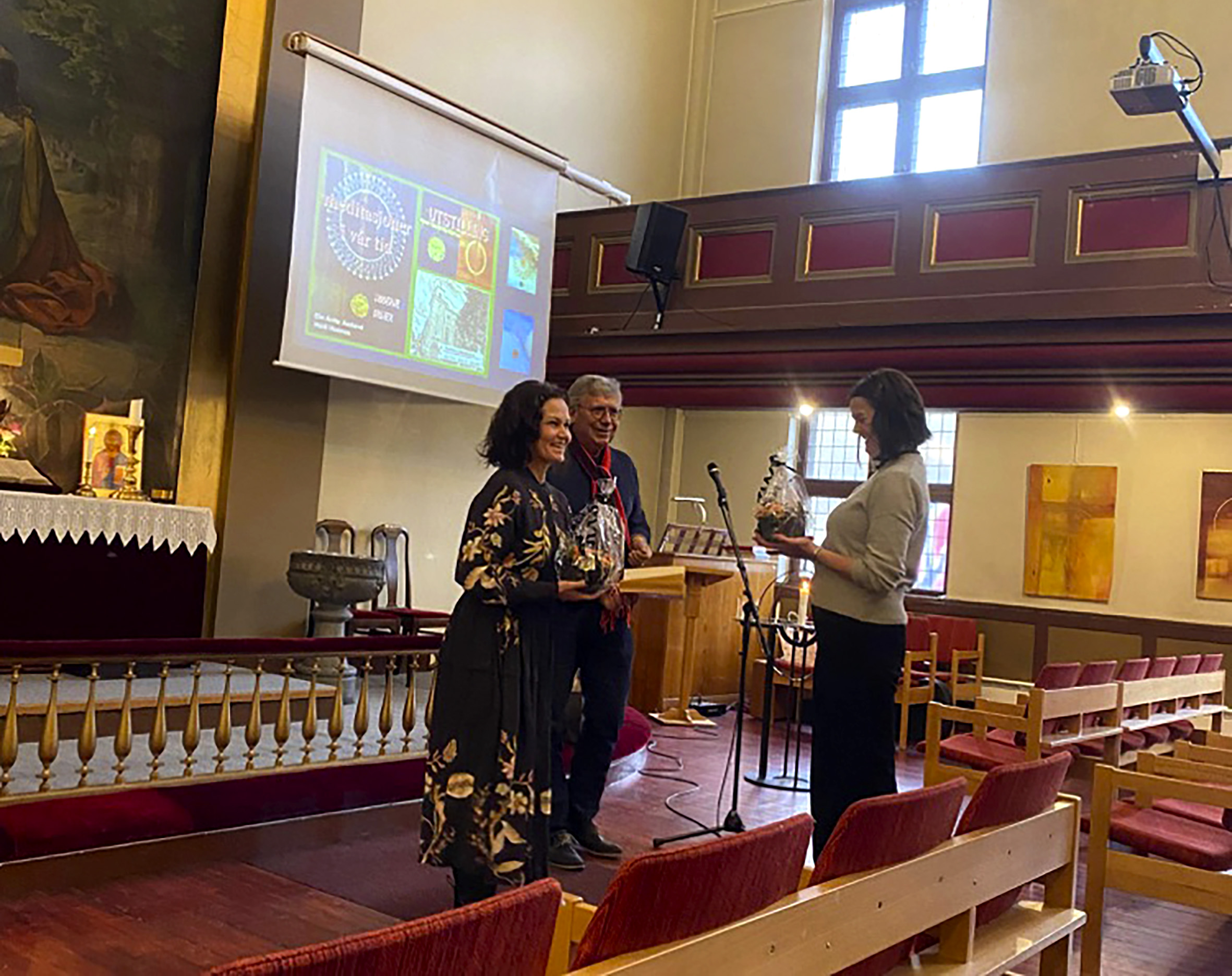 Du kan også lese hjemmesidens ntervju med kunstnerne, og en reportasje fra deres atelier her: https://trondheimumc.com/2021/10/28/vil-berore-med-moderne-ikoner/
