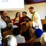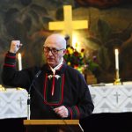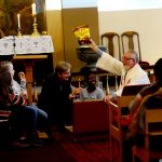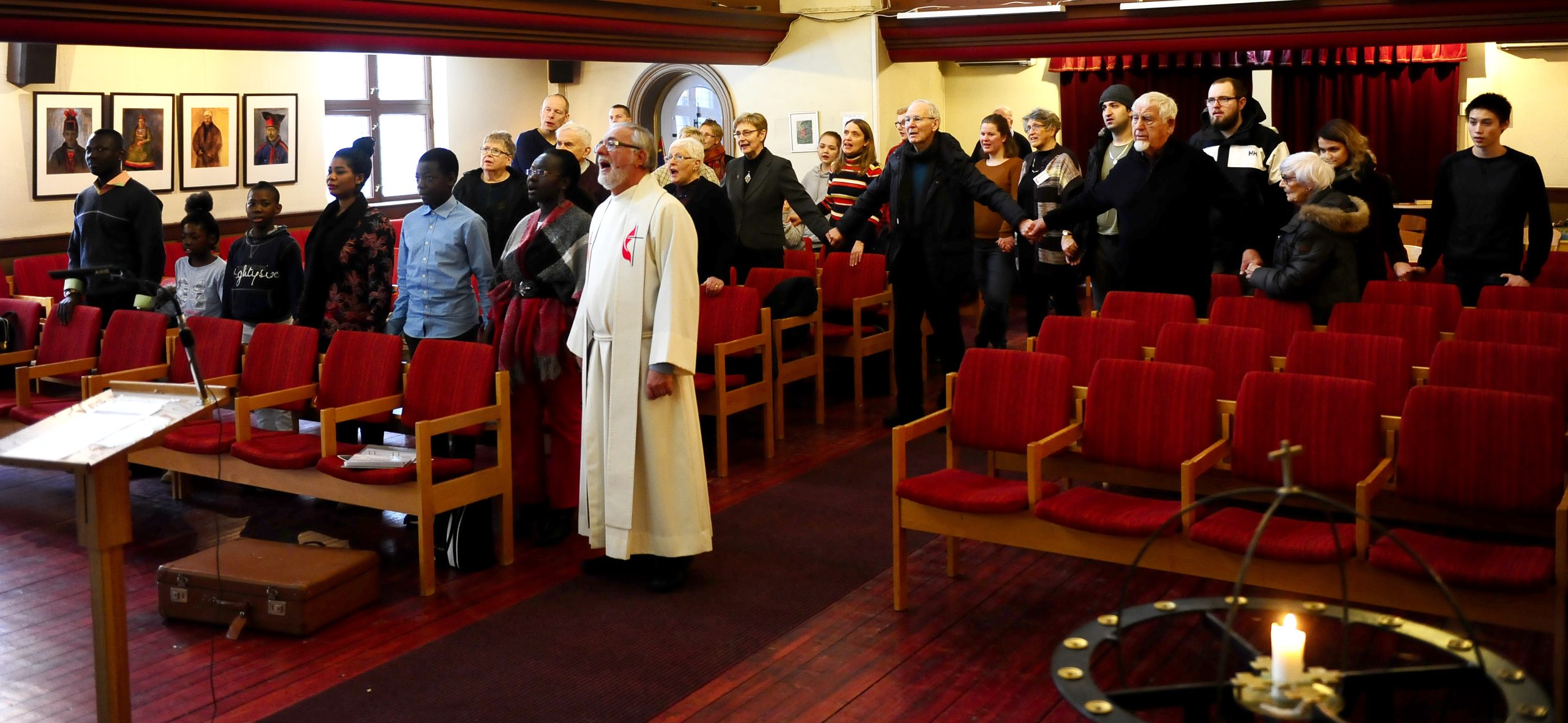 På gudstjenesten, dagen før den samiske nasjonaldagen og starten på jubileumsuka Tråante 2017, hadde vi i Metodistkirken besøk av mange samer og representanter for flere urfolk fra ulike deler av verden. Utgangspunktet for Yngvars Ruud meget sterke og personlige preken var fortellingen i Markus 2:1-12 om den lamme mannen som ble firt ned på en båre, gjennom et hull i taket, – for så å bli helbredet av Jesus.
