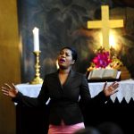 Gleden over å samles på tvers av så mange kirke- og nasjonale og kultuirelle grenser, var følbar allerede under summingen før gudstjenesten startet. En lovsangssekvens tidlig i gudstjenesten forsterket opplevelsen. Vår egen Amelia Adubeea fra Ghana (medlem siden 2013) synger ofte på gudstjenestene, men aldri har vi hørt henne så inderlig og sterk i framføringen som i dag. På sitt ghanesiske morsmål sang hun med kropp og sjel; øyne, ansikt og hender var med å formidle budskapet om at «hvis vi bringer våre byrder og vanskeligheter til Kristus, vil han stille alle stormene i våre liv». Vakkert, troverdig og sterkt!