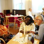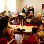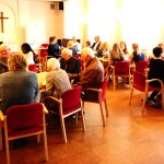 Etter gudstjensten var det kirkekaffe i Wesleysalen – og der summet det! Tydelig at at folk satte pris på samling og fellesskap etter en lang sommer.
