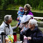 Ikke før er vi hjemme fra menighetsweekend sist helg, så dro vi altså på tur igjen. Bare en «søndagstur» denne gangen, slik Trondheimsmetodistene regelmessig gjør. Turen gikk til idylliske Kobberdammen, et av de mange vannene i den vakre Bymarka. Været ble faktisk bra; vi spiste, grillet, pratet og koste oss ved vannet i solskinn – før det ble litt gråere og våtere, men da skulle vi hjem uansett! 23 var med på turen, i alderen 0,6 til 88,5 år!
