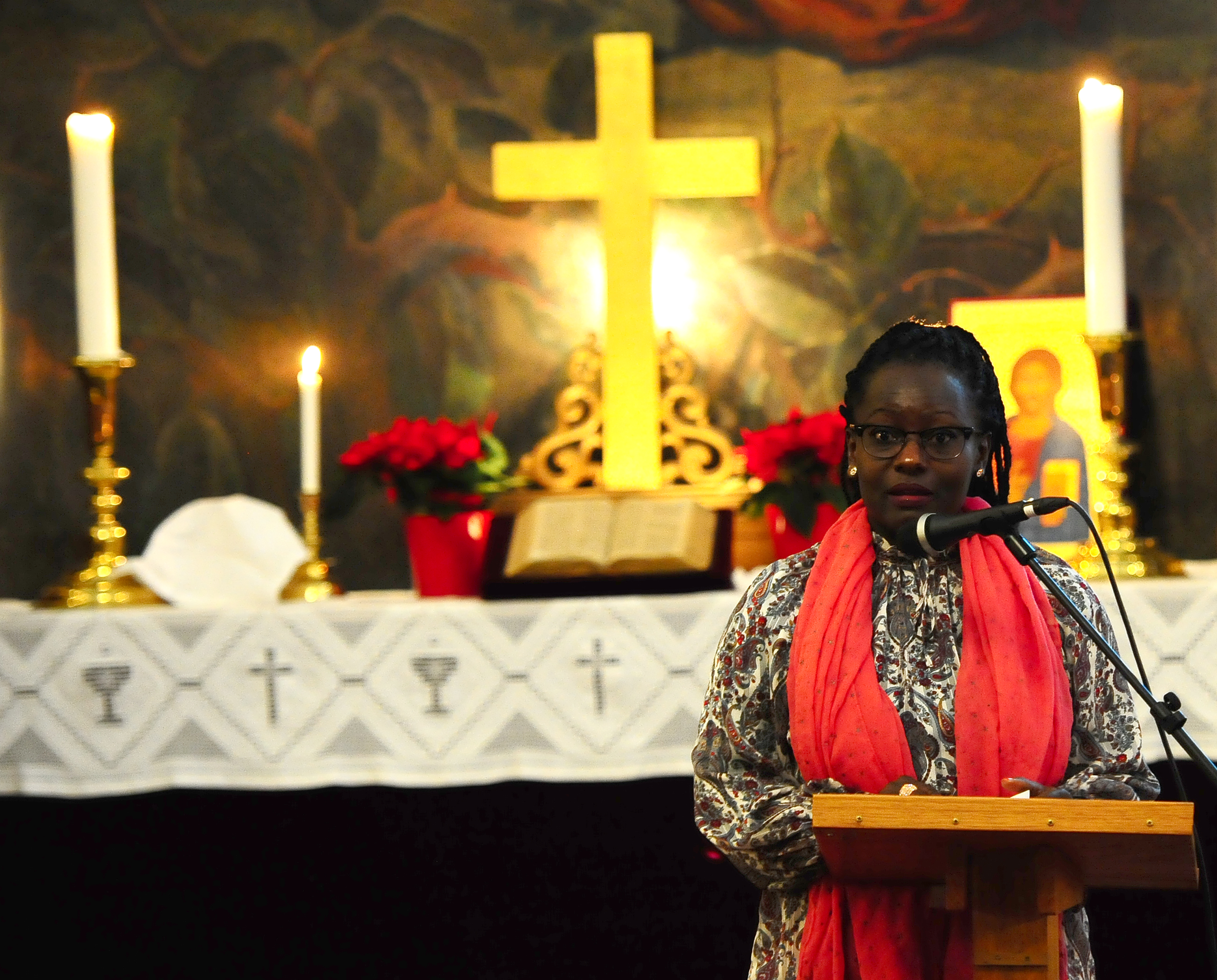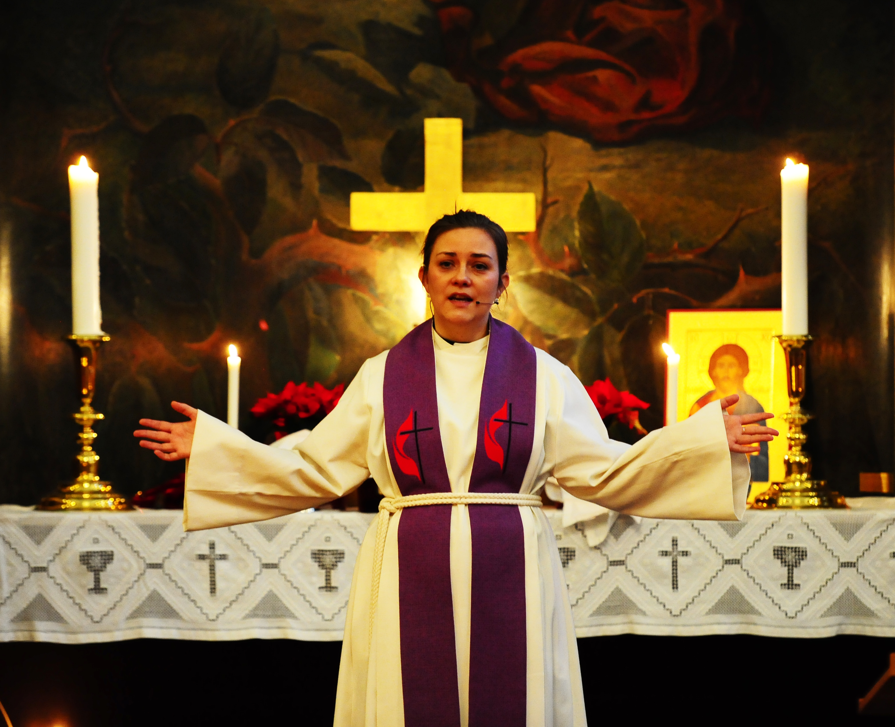 Fra boken gikk Christina videre til Johannesevangeliets «fødselsfortelling»; om ordet som ble kjøtt, og tok bolig i blant oss. Grunntekstens ord for å «ta bolig» kan også oversettes med «å slå opp telt», et bilde Christina likte: Teltet er flyttbart; ikke stasjonært. Uansett hvor vi er, slår Gud opp sitt telt i blant oss og er nær oss. Der vi / du er hjemme, er også Gud hjemme. Det er nåde; løftet om at han vil være nær oss alle dager. Ikke alle dager er gode, men Gud er alltid nær, understreket Christina. Som avslutning på prekenen fortalte hun historien om en gutt som i skolens julespill skulle være vertshusholderen som avviser Josef og Maria og henviser dem til stallen. Men da Josef spurte om husrom, ble gutten så overveldet av situasjonen at han svarte: «Klart det er plass for dere! Velkommen inn!»