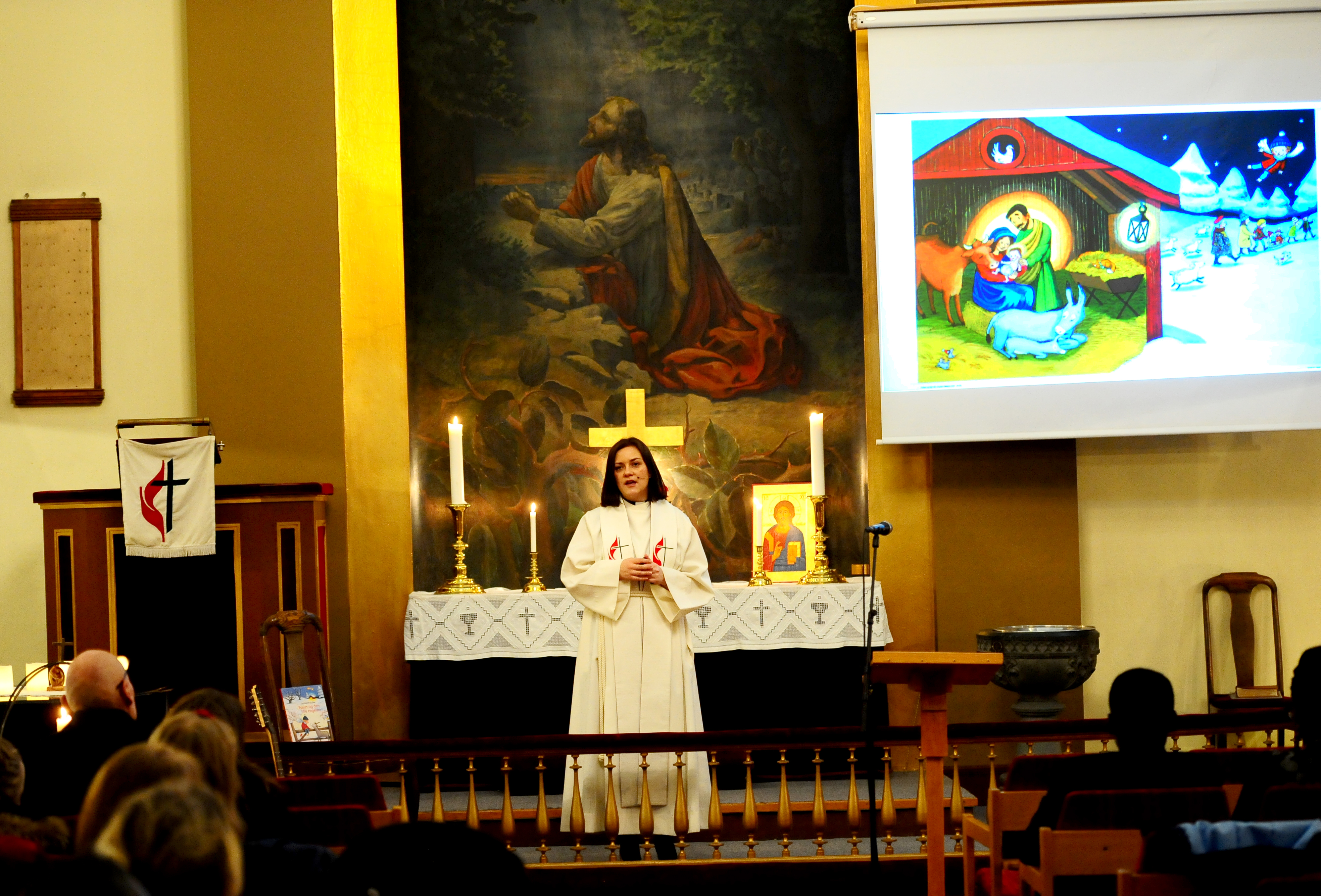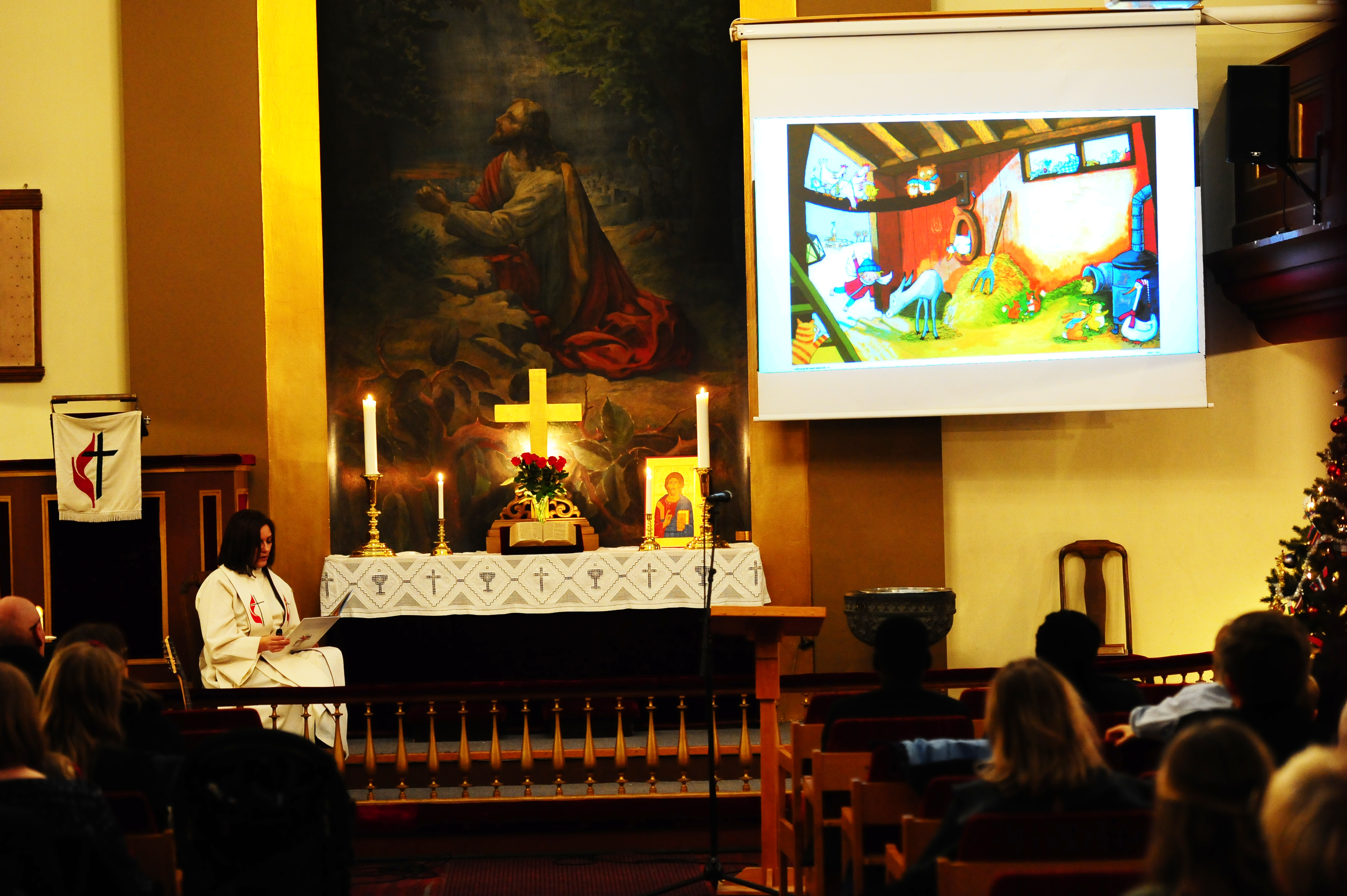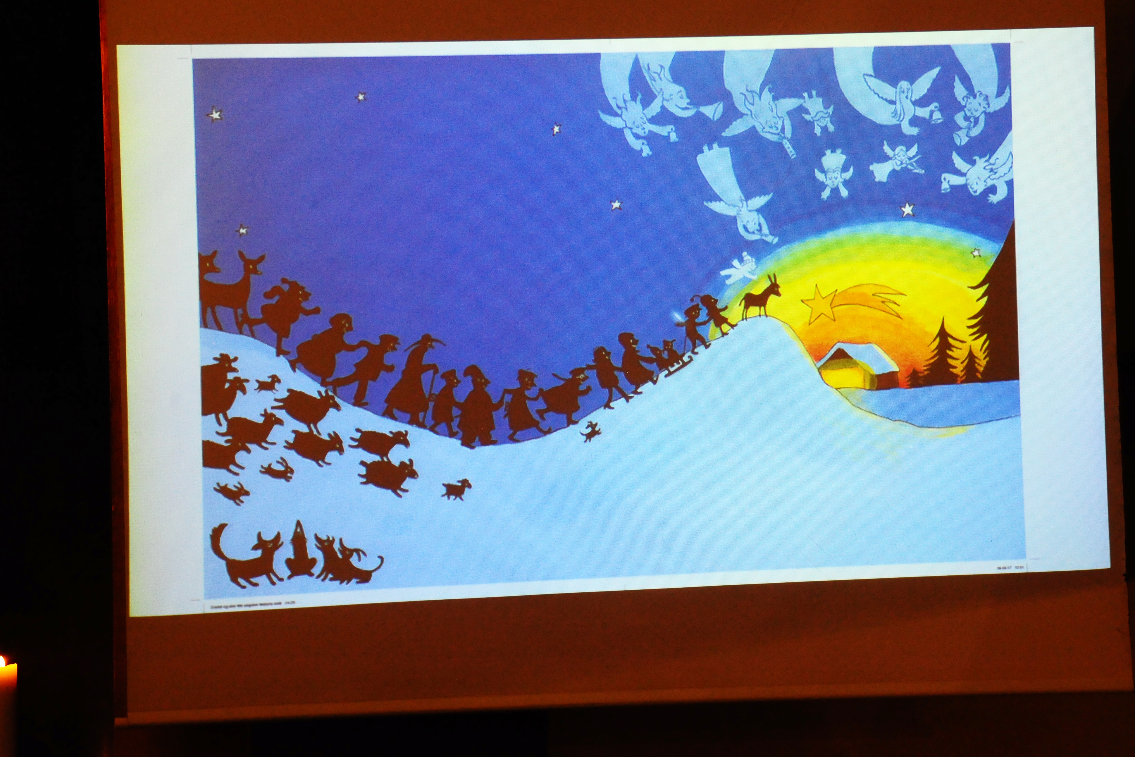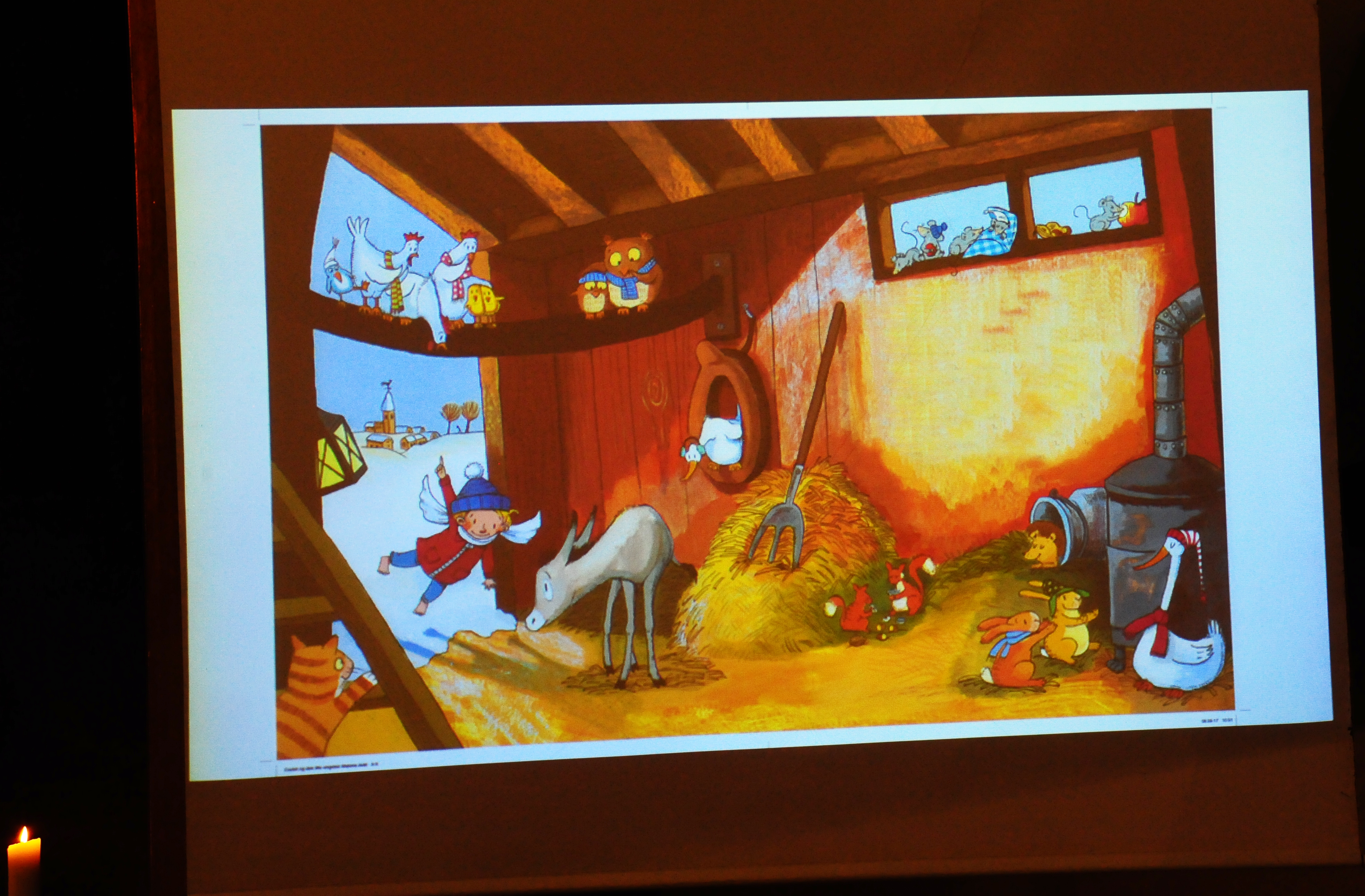 Pastor Christina Thaarup holdt sin første julaftenpreken i Trondheim. Det gjorde hun først med å lese og vise historien om «Eselet og den lille engelen» av den tsjekkisk/tyske barnebokforfatteren Otfried Preussler. En forfriskende «ny» anekdote spunnet rundt budskapet om Jesu fødsel. ( Preussler, som døde i 2013, 90 år gamme var en meget anerkjent og populær forfatter. Hans mange barnebøker er solgt i over 50 millioner eksemplarer og er oversatt til minst 55 språk. ) Dette er «storyen» i hans julefortelling: