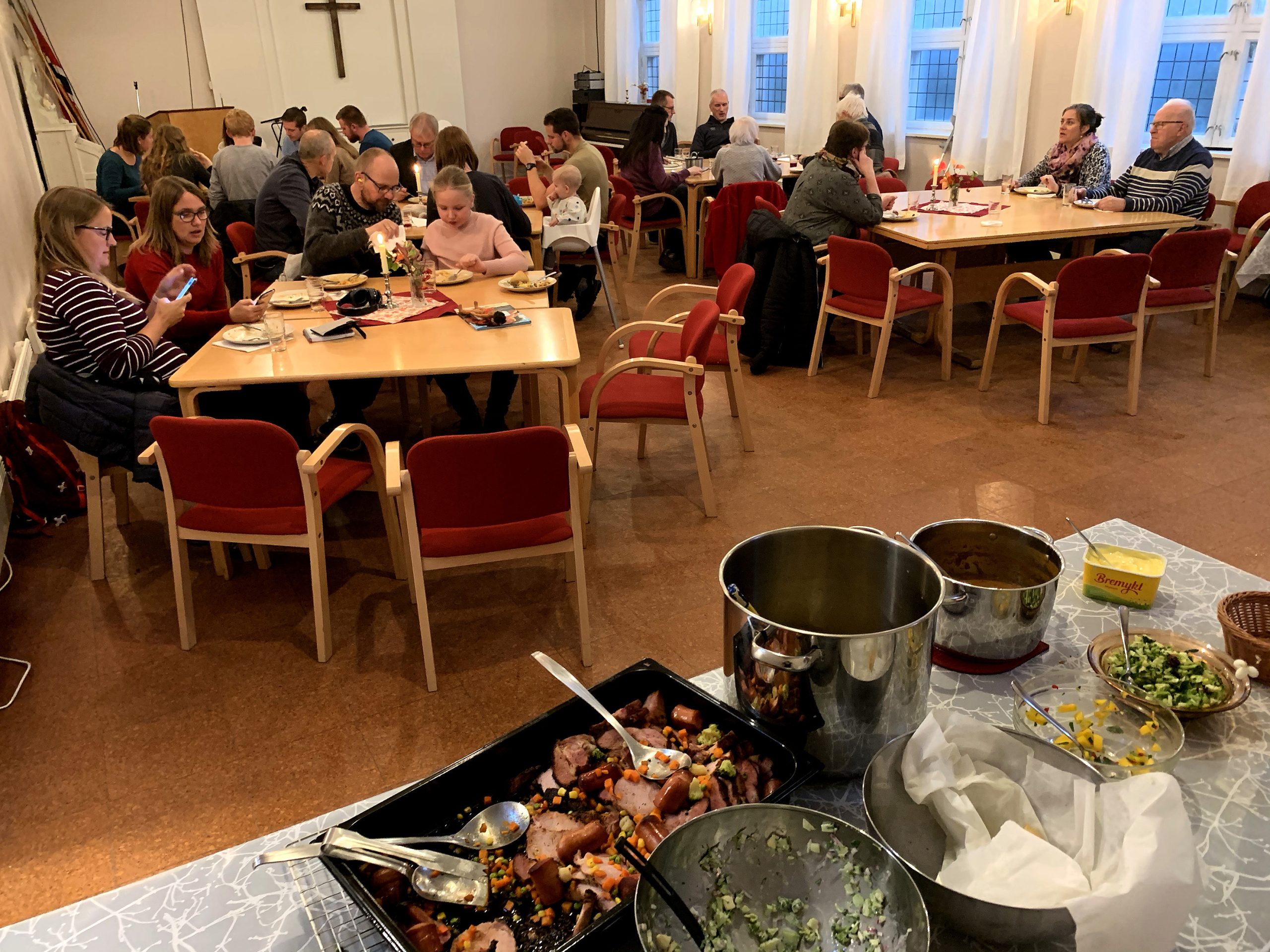 Mandag 2. desember kl. 16.30: MYLDREMIDDAG. Du er velkommen til et godt og timelig (30 kroner) måltid, og du får oppleve fellesskap rundt bordet med andre trivelige folk – i alle aldre!