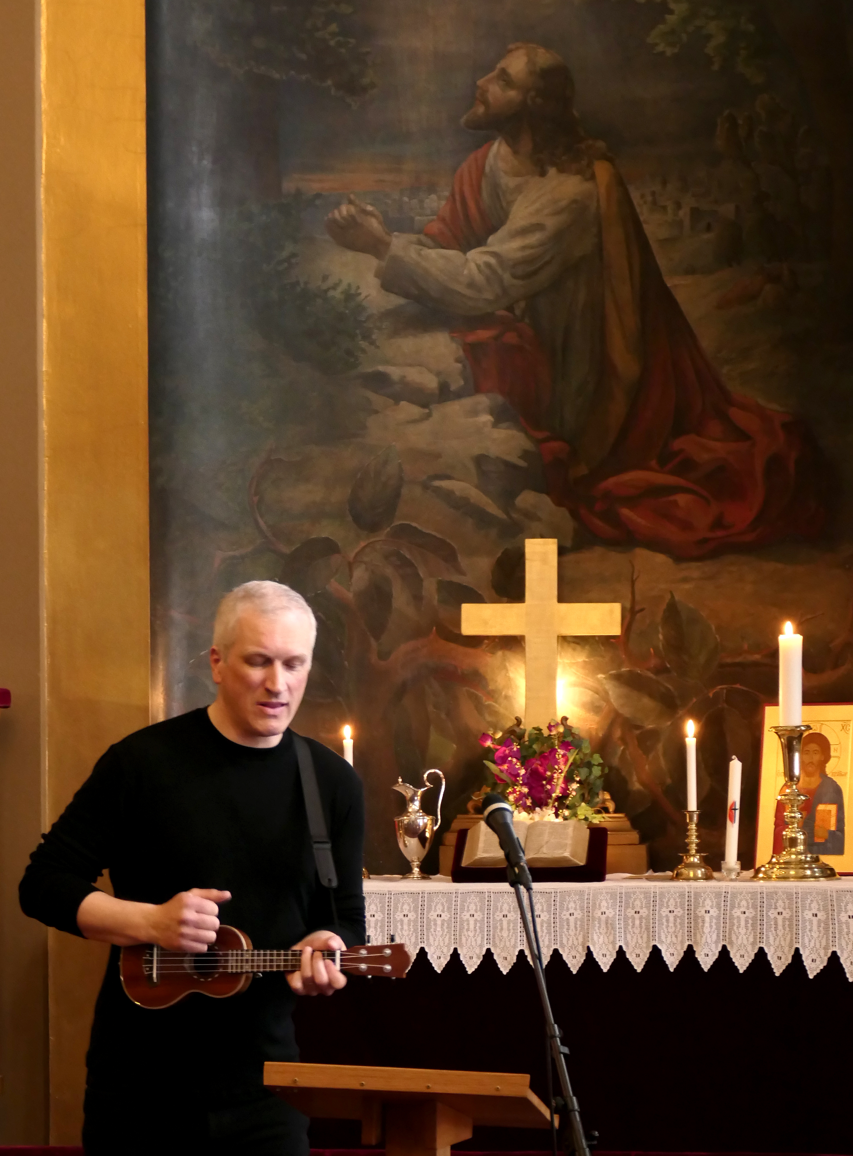 Hellige treenige Gud, du er verdens opprettholder og frelser. Vi kommer sammen i bønn for Ukraina. Vi ber om innsikt, mot og handlekraft hos politikere og ledere til selv å gå fredens vei og vise andre veien til rettferdig fred. Styrk enheten mellom mennesker, folk og stater. Og vær nær alle mennesker som befinner seg i det konfliktrammede området, at de erfarer verdens solidaritet og din kjærlighet og nærhet, Gud. Kom synlig til stede gjennom utstrakte hender. Se til alle russere og andre grupper som også lider under denne krigen. Hjelp oss alle å arbeide for fred og forsoning. Jesus Kristus, vår befrier, kom med din trøst i våre urolige hjerter og forny håpet i oss alle. Kom med din fred.