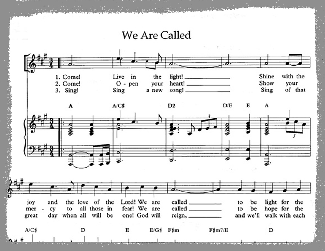 Favoritt-salme/sang: For tiden har jeg «We are called» på hjernen. Den sangen lærte jeg i First UMC Portland. Så vidt jeg har klart å finne ut så finnes den ikke på norsk, så hvis det er noen gode sangoversettere som leser dette så vet de hva de skal gjøre! (se bilde t.)