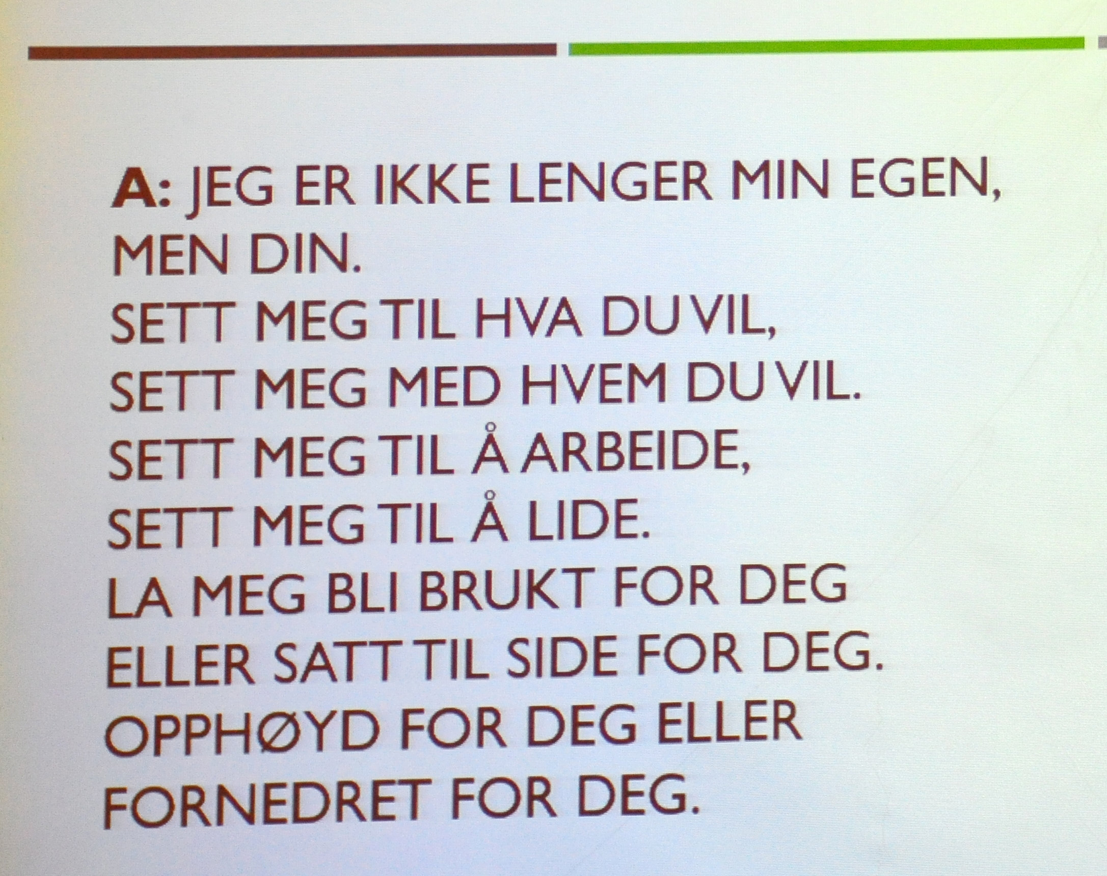 – Også i våre egne kristenliv kan vi erfare at jordsmonnet varierer, påpekte Christina. Vårt hjerte og sinn er ikke alltid like mottagelig. Derfor er det både trøst og håp i at Gud ufortrødent fortsetter å så på samme rause måte. Lignelsen utfordrer oss også til å stille spørsmålet; er jeg åpen for ordet, er hjertet mitt forberedt til å ta imot? Hvordan er det med vår tro? Det gjelder å sikre best mulig jordsmonn i troshagen vår, understreket Christina. Valget er alltid vårt, men ordet sås hele tiden og over alt slik at det kan nå oss – uansett hvor og i hvilken situasjon vi befinner oss.