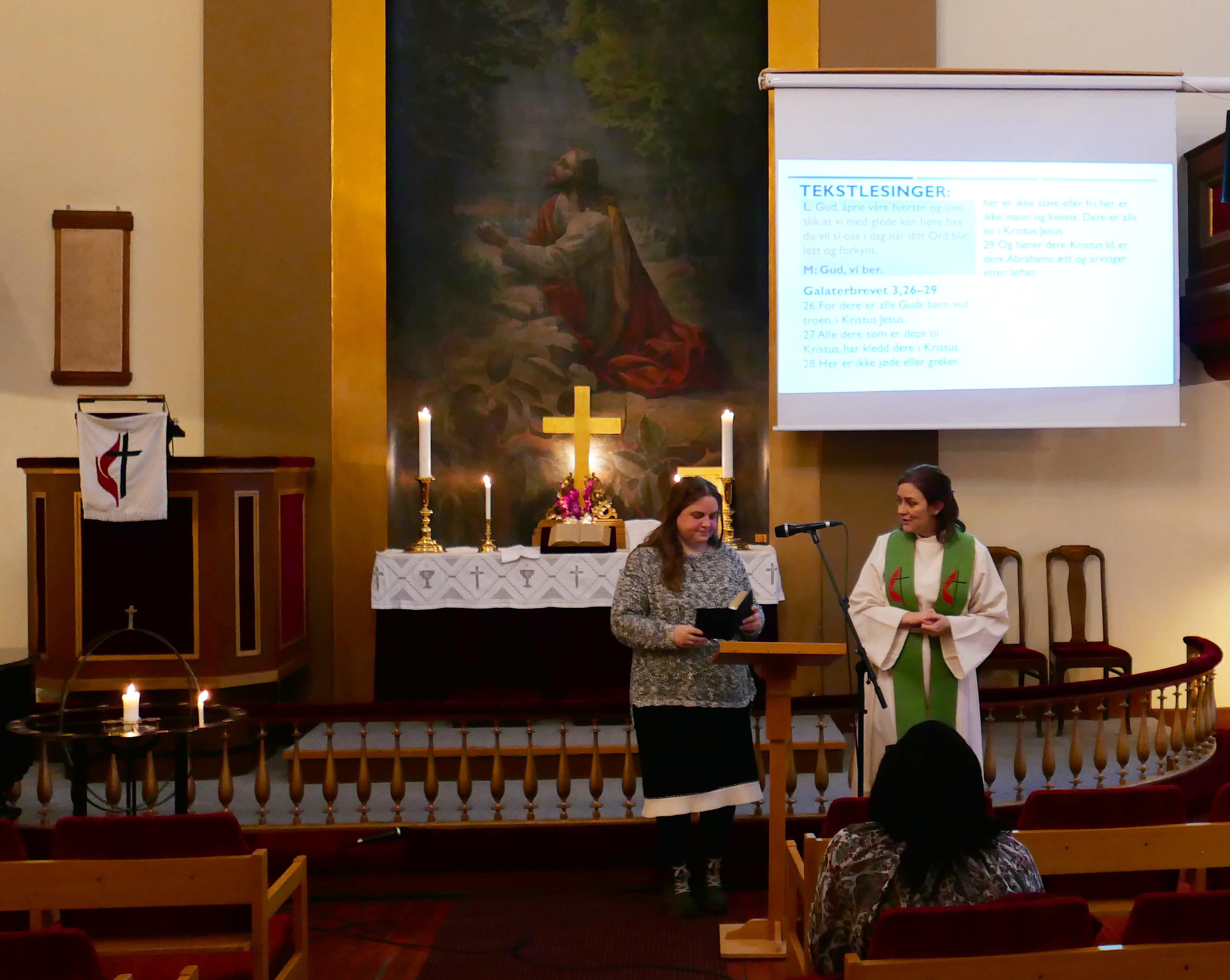 Vår pastor Christina Thaarup holdt dagens preken, og forrettet nattverden sammen med Ilens sogneprest April Maia Almås (som har bakgrunn fra vår «moderkirke», den anglikanske kirken).
