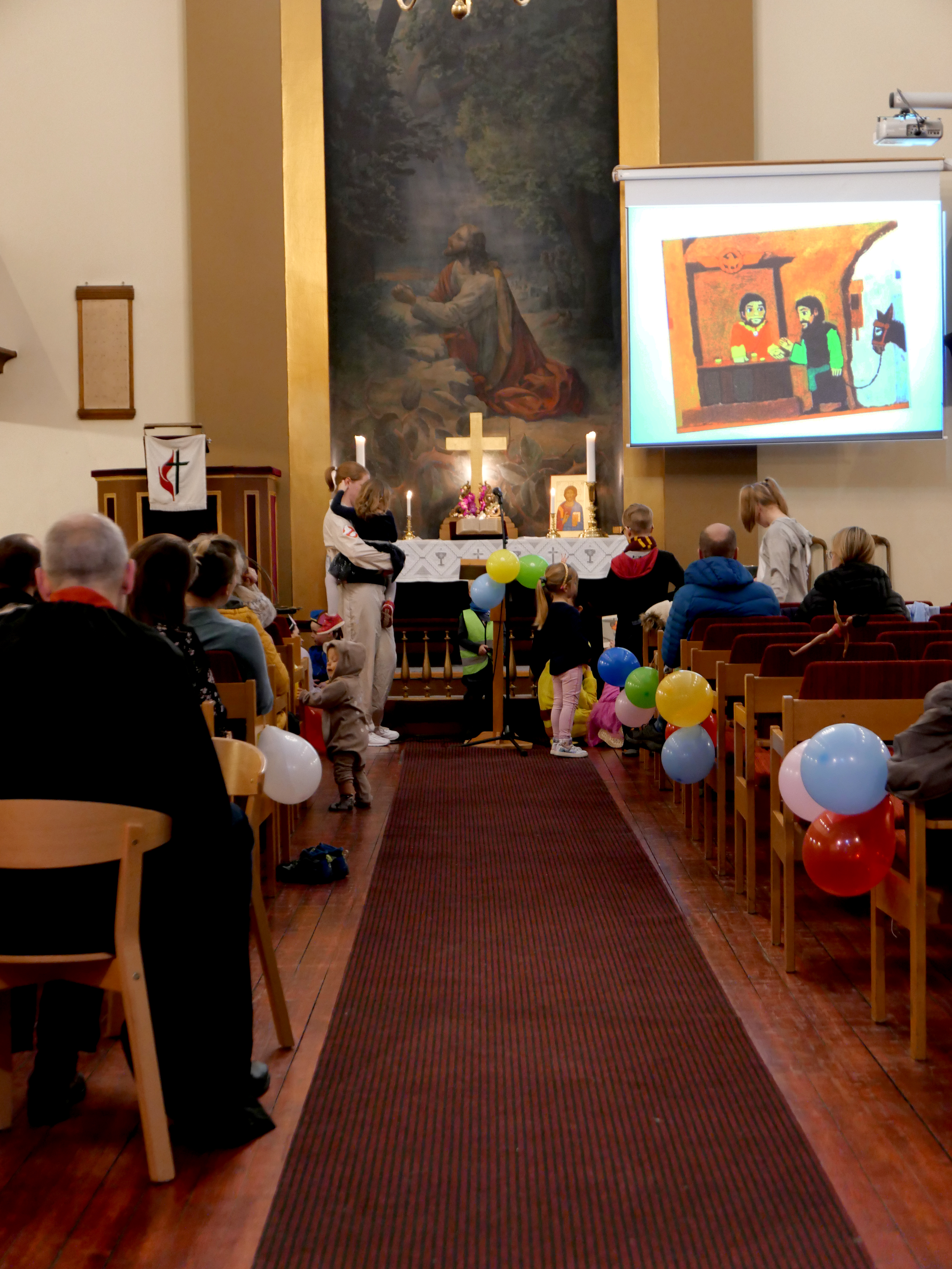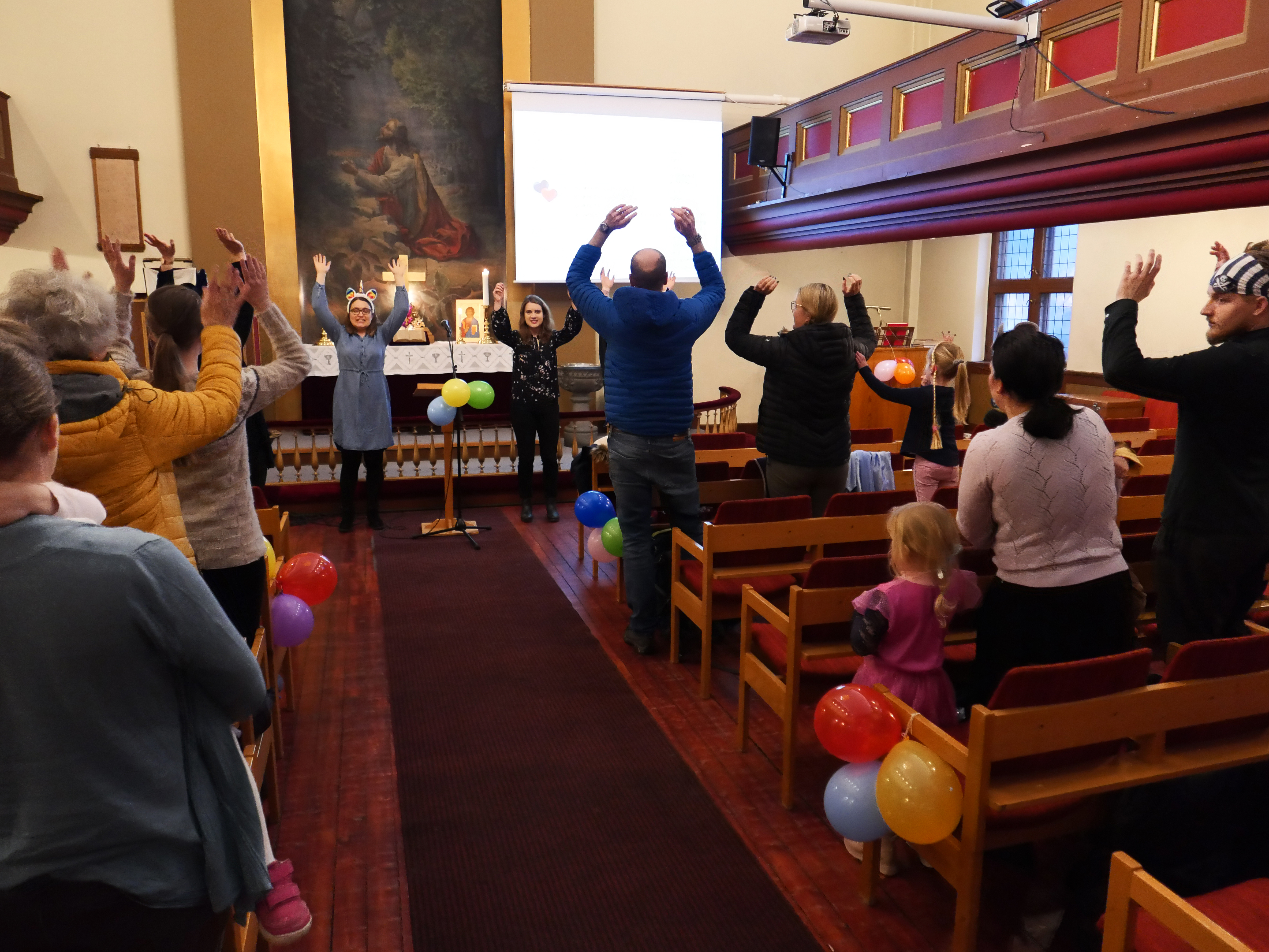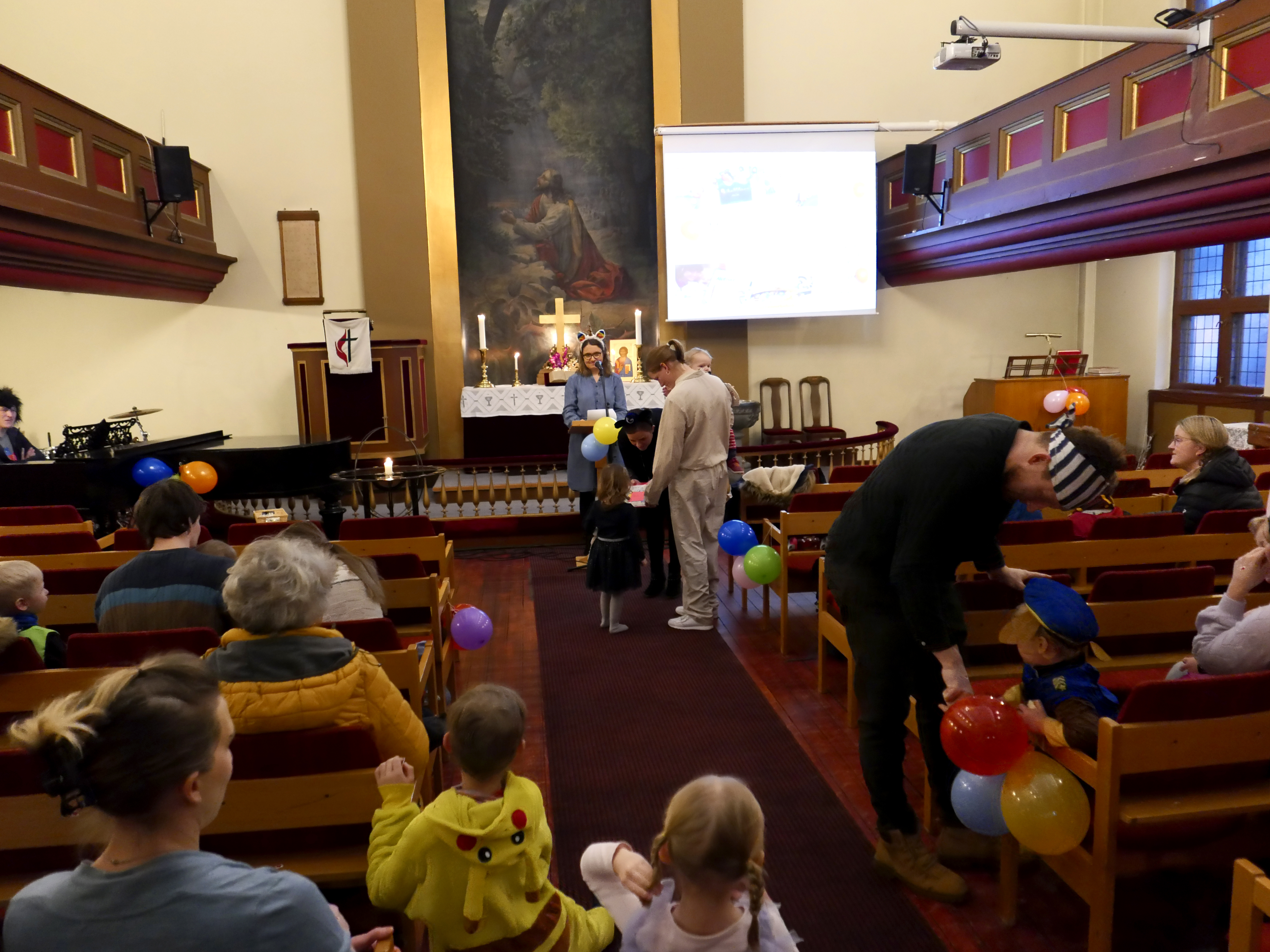 NB: Vi har ingen gudstjeneste i morgen, søndag16. februar, men lever fortsatt godt på karnevalsgudstjenesten sist søndag hvor pastor Christina blant annet klistret et hjerte, som tegn på Guds kjærlighet, på alle de ca 35 som kom til kirken med liv og lyst.
