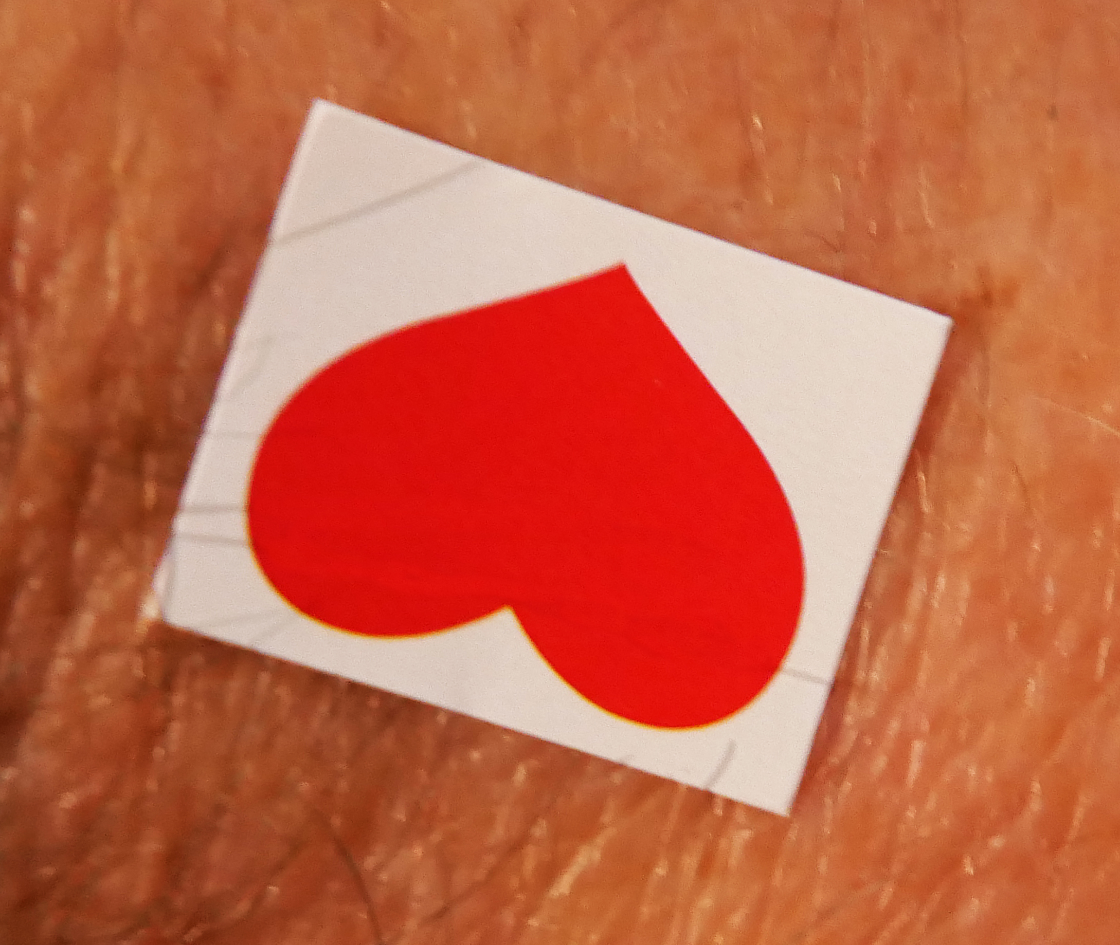 Av og til glemmer vi det, sa Christina. For å minne oss om det, gikk hun rundt i hele kirken med en lang remse hjerteklistrelapper og «merket» oss alle, én etter én, med et hjerte som tegn på Guds ubetingede kjærlighet. ( Ekstra passende fordi det om noen dager var Valentinsdag )