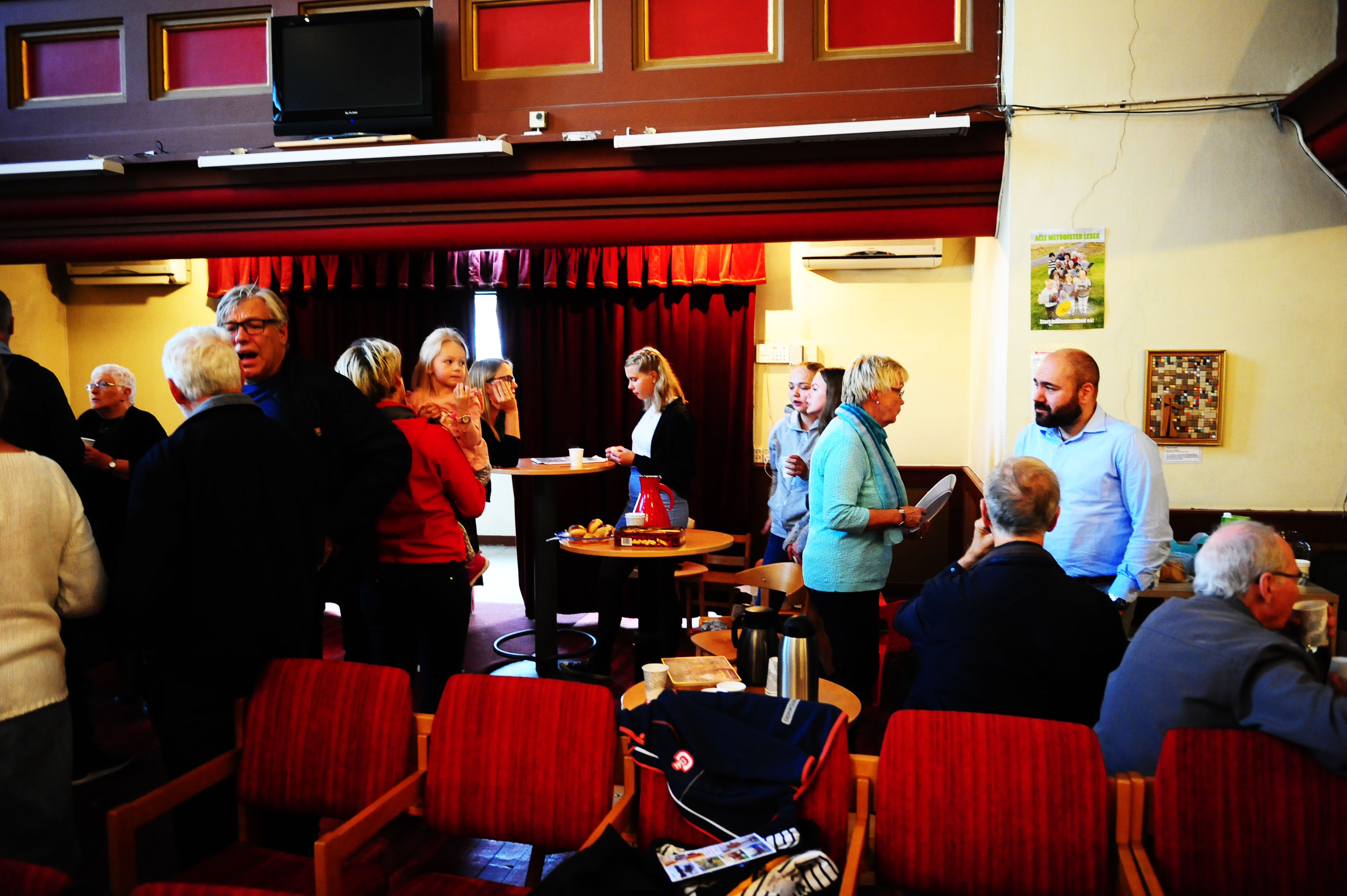 Etter gudstjenesten var det kirkekaffe i Wesleysalen, med et særdeles mangfoldig utvalg kaker. En form for teologisk poeng i det også…
