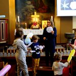 Påskegudstjenesten 21. april, var godt besøkt, med i overkant av 35 tilstede; blant dem meget hyggelig besøk fra Danmark (tante og onkel og søskenbarn av vår kommende, nye pastor Christina). Gudstjenesten var preget av mange salmer, og «Deg være ære» ble sunget med vers på både norsk, fransk og engelsk. Våre ghanesiske medlemmer Ernestina og Amelia gledet nok en gang med sin lovsang. Takako forsterket gudstjenesteopplevelsen med sitt orgelspill. Sylvi hadde ansvaret for samtalen med barna, og når «kofferten» ble åpnet, inneholdt den et tomt kors – og sjokoladepåskeegg! Under førbønnen ble det selvfølgelig tent lys for ofrene og alle berørte av terrorbombingen mot kirker og hoteller i Sri Lanka; en hendelse som kastet lange skygger over påskefeiringen i hele verden.