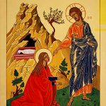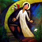Maria fant graven tom. Gråtende ble hun tilsnakket av en mann hun umiddelbart trodde var gartneren, men straks den ukjente sa navnet hennes «Maria», skjønte hun hvem det var. Men hun fikk ikke ta på ham; «Rør meg ikke», eller kanskje «Hold meg ikke fast», sa Jesus.