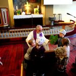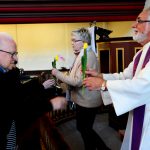 Chetwynd, som var pastor i Trondheim Metodistkirke fra 1988-1997, var en særdeles velkommen «våroffer-gjest». Det var flott å både se, møte og høre ham igjen! Selv om kraftig «bløtsnøstorm» gjorde sitt beste for å stille spørsmålstegn ved kalenderdatoen og vårfølelsen, fikk omkring 35 frammøtte en varm og optimistisk gudstjeneste, ledet av Ingerid Marie Hoggen (som Chetwynd konfirmerte i sin tid som prest i Trondheim i forrige årtusen…). Etter gudstjenesten var det hyggelig og god kirkekaffe i Wesleysalen.
