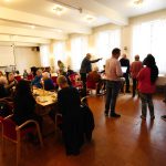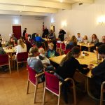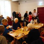 Etter turen hadde vi rundebords-kirketurkaffe på kafeen som Ranheim Skiklubb driver i Tjønnstuggu. Kakao, kaffe, vafler og muffins, til særdeles hyggelige priser, smakte utmerket. Frederic hadde forberedt en quiz som vi til sammen fikk en utmerket score på! Og høy score får turen også!
