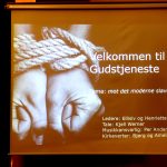 Gudstjenesten med temaet ”Det moderne slaveri” var planlagt, og ble ledet, av to av menighetens ungdommer, Ellisiv Sivertsen og Henriette Larsen Strømme. Og den ble en en meget aktuell start på vårt overordnede november-tema: ”Hellighet – utopi eller et ufravikelig must?” Per Anders Mortensen (piano) ledet en trio som spilte strålende. Vi hadde også besøk av 10 elever fra videregående skole som etter gudstjenesten fikk stilt sin nysgjerrighet om Metodistkirken i en samtale med pastor Rødder.